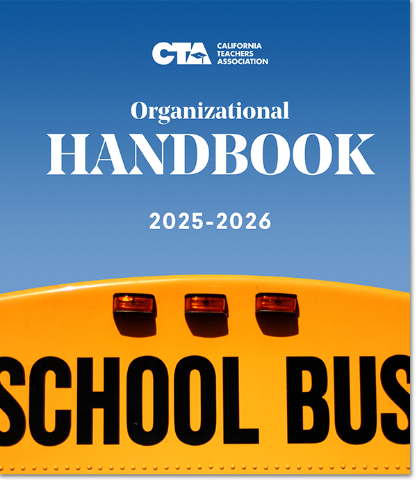 The CTA Organizational Handbook is an accurate record of all policy binding upon the governance structure of CTA adopted by the State Council of Education. It is used by the Board of Directors, officers, staff (including legislative advocates), liaisons and other bodies of the Association for reference in reflecting the policies of CTA. The main sections of the Organizational Handbook include CTA’s Articles of Incorporation and Bylaws, Standing Rules, Policies and Procedures.