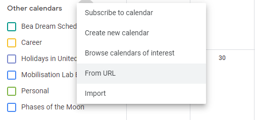 - Select “Add Other Calendars From URL” and then add the copied URL on that screen.