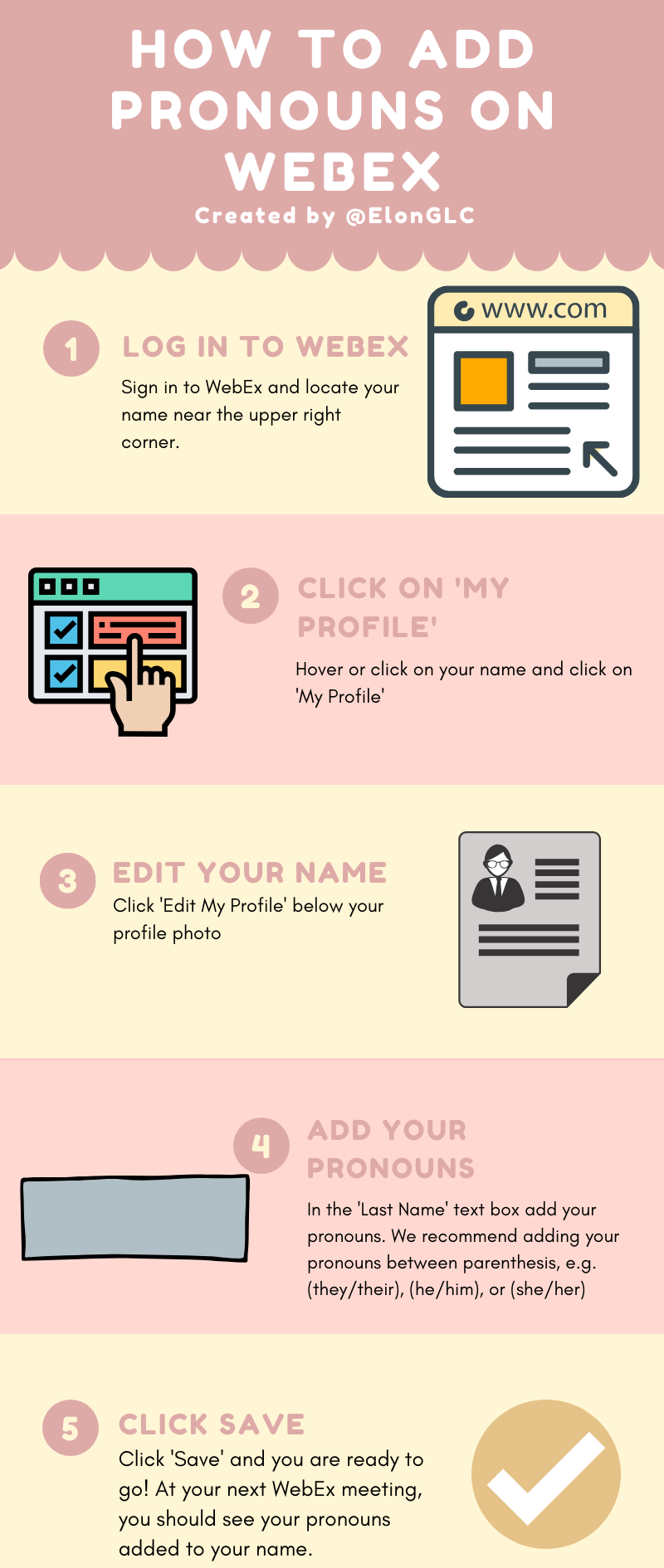 If you already have a Webex account, you can follow steps in this quick guide to edit your name and add you pronouns: