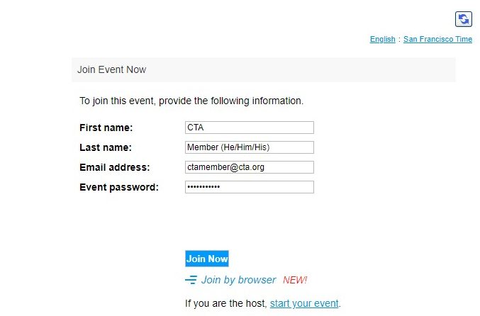 To edit your name in Webex meetings, you will need to have the Webex client installed (download from webex.com) and once you click the “Join Session” button from the Attendee Hub, the Webex client will automatically launch and ask you for your name and email address. Here you can add your pronouns to your name:
