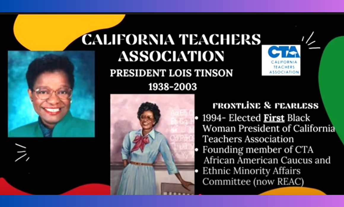 Women’s History Month in March is an excellent time to remember our union’s own stellar history of women leaders. Lois Tinson was one of them — the first African American and the first person of color to serve as president of the California Teachers Association (1995–1999).