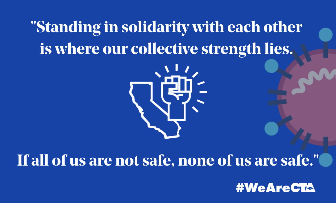 The presidents of 18 Alameda County CTA locals issued a letter in October to the superintendent of Alameda County schools and the county public health officer to urge them to ensure strong COVID-19 prevention measures as they consider physically reopening schools – bringing hundreds of thousands of students and staff indoors for many hours a day, in poorly ventilated spaces and with serious underfunding.