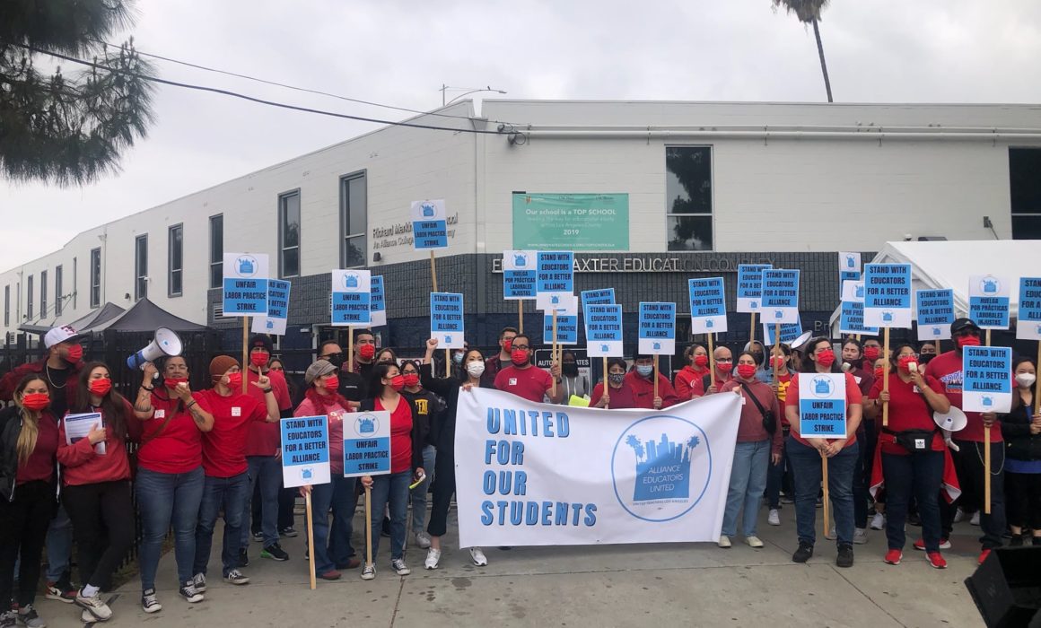 Educators at four Alliance College-Ready charter schools in Los Angeles are on a one-day Unfair Labor Practice strike today in response to the Alliance Board of Directors refusing to bargain for more than three years, despite multiple orders to do so by the state Public Employment Relations Board.
