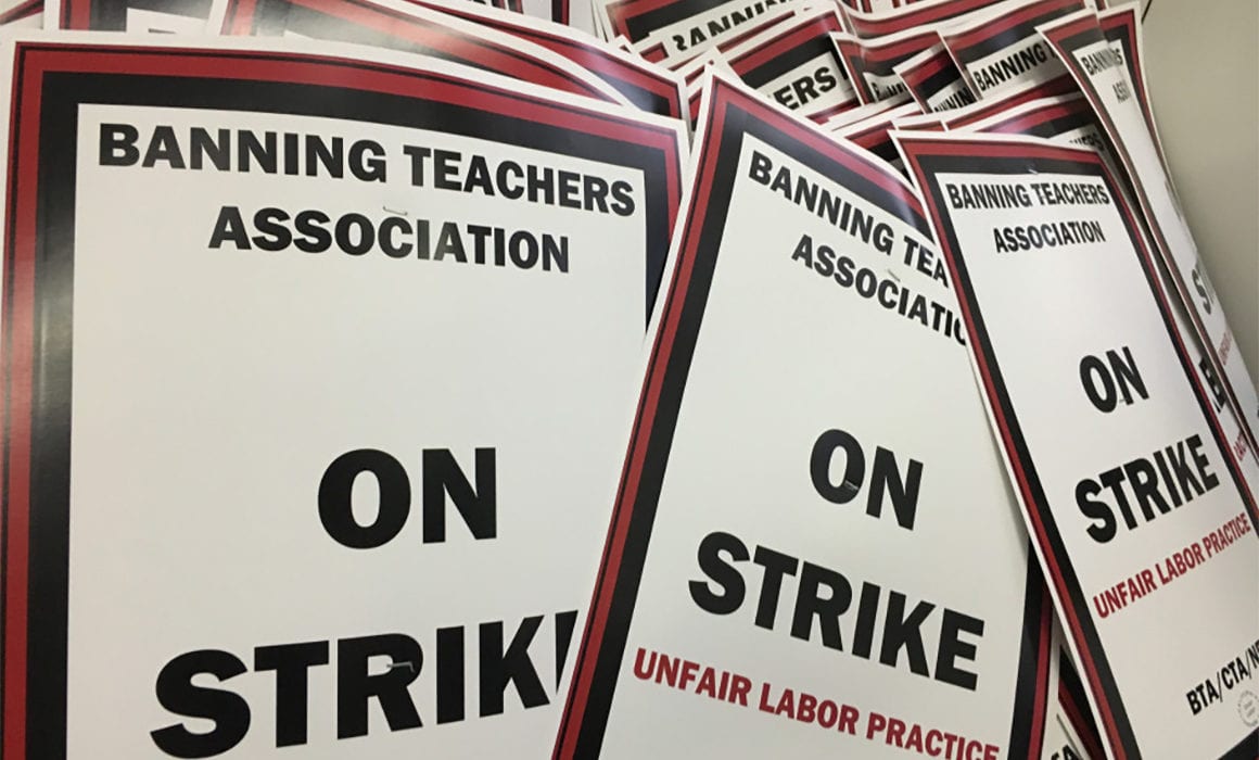 Banning teachers held the strike line for the second day over the Unfair Labor Practice violation by Banning Unified School District (BUSD). District officials called for an 8:00 AM meeting with the Banning negotiating team to try and end it before a third day of strike further impacts the community.