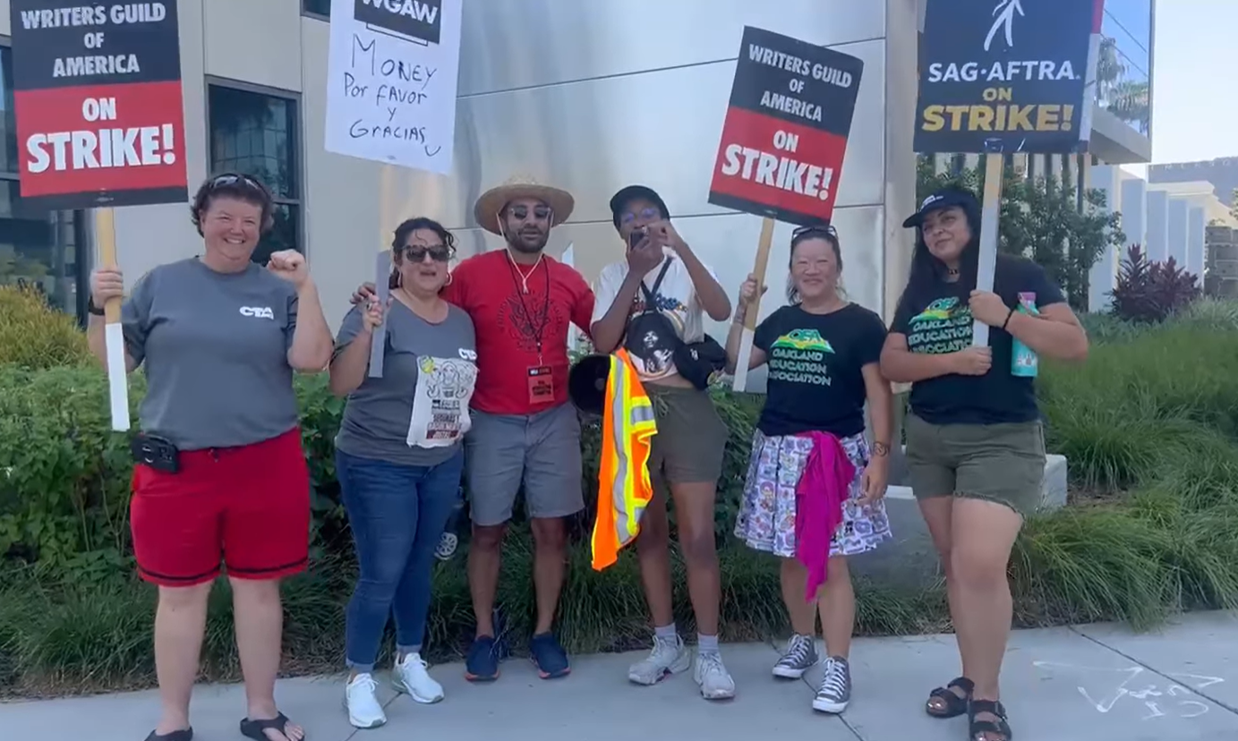 Educators from Sacramento City Teachers Association and Oakland Education Association joined picketing writers and actors after the close of Summer Institute.