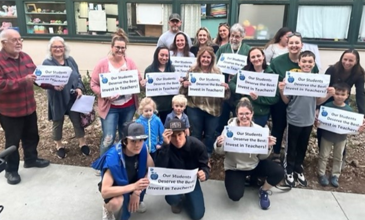 The small community of Camino is a one-school district of less than 450 students in the foothills of the Sierra Mountains. CFA counts just 26 members. The local had already been organizing with community leaders (efforts that resulted in a 10% investment in teacher salaries last year), so when the video leaked, its word-of-mouth meeting in Dillard’s classroom was packed with parents, grandparents, teachers and other staff. The first order of business: unifying the community by formalizing a coalition.