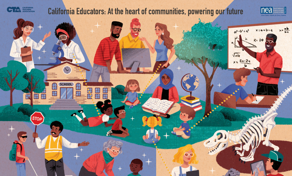 This year’s theme is “California Educators: At the Heart of Communities, Powering Our Future.” (download poster here) As part of the celebration, CTA has produced a series of television, radio and Internet advertisements highlighting the vital contributions of educators, which are running across the state this week and all month. One ad, “Love of Teaching,” spotlights the whole community it takes to make schools run every day, while “Appreciation” showcases the thankful words of parents and families for the difference educators make in their children’s lives. Both ads are also available in Spanish (“Amor Por La Enseñanza” and “Corazón De La Comunidad”)
