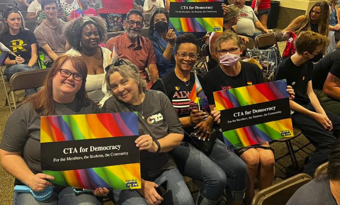 Associated Chino Teachers (ACT) members are fighting back against discriminatory, anti-LGBTQ+ policies recently adopted by the Chino Valley Unified School District (CVUSD) Board of Education. The CVUSD Board adopted a new regulation banning the Pride and other flags and emblems from district properties, and, in a separate policy, is requiring educators to “out” trans students to their parents in writing.