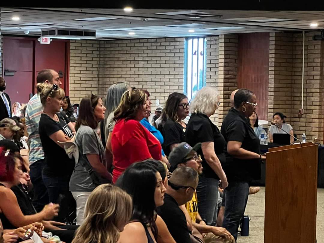 CTA President David Goldberg and other leaders joined Chino educators in support at a contentious Chino Valley school board meeting in July.
