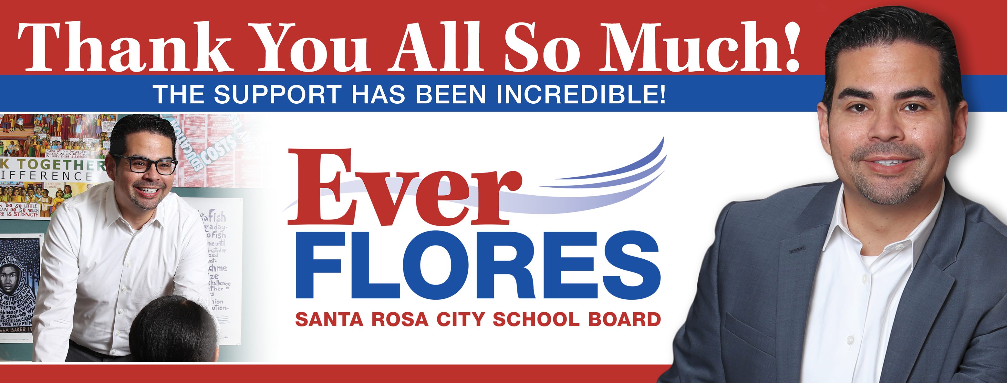 “Thank you to everyone who supported the campaign and everyone who voted, walked, phoned, texted and participated in our democracy,” Flores wrote on Facebook. “I look forward to the privilege of serving on our school board.”