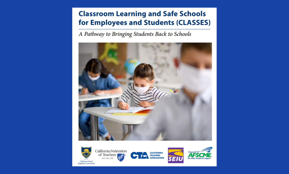 In a collaborative effort to return to classrooms as soon as possible, the coalition of education labor groups released the Classroom Learning and Safe Schools for Employees and Students (CLASSES) plan, which outlines the steps needed to physically return to schools safely. With COVID-19 still spreading uncontrolled across the state, the CLASSES plan takes a holistic approach to physically returning to schools that includes addressing the risk of community spread to ensure the safety of students, educators and their families.