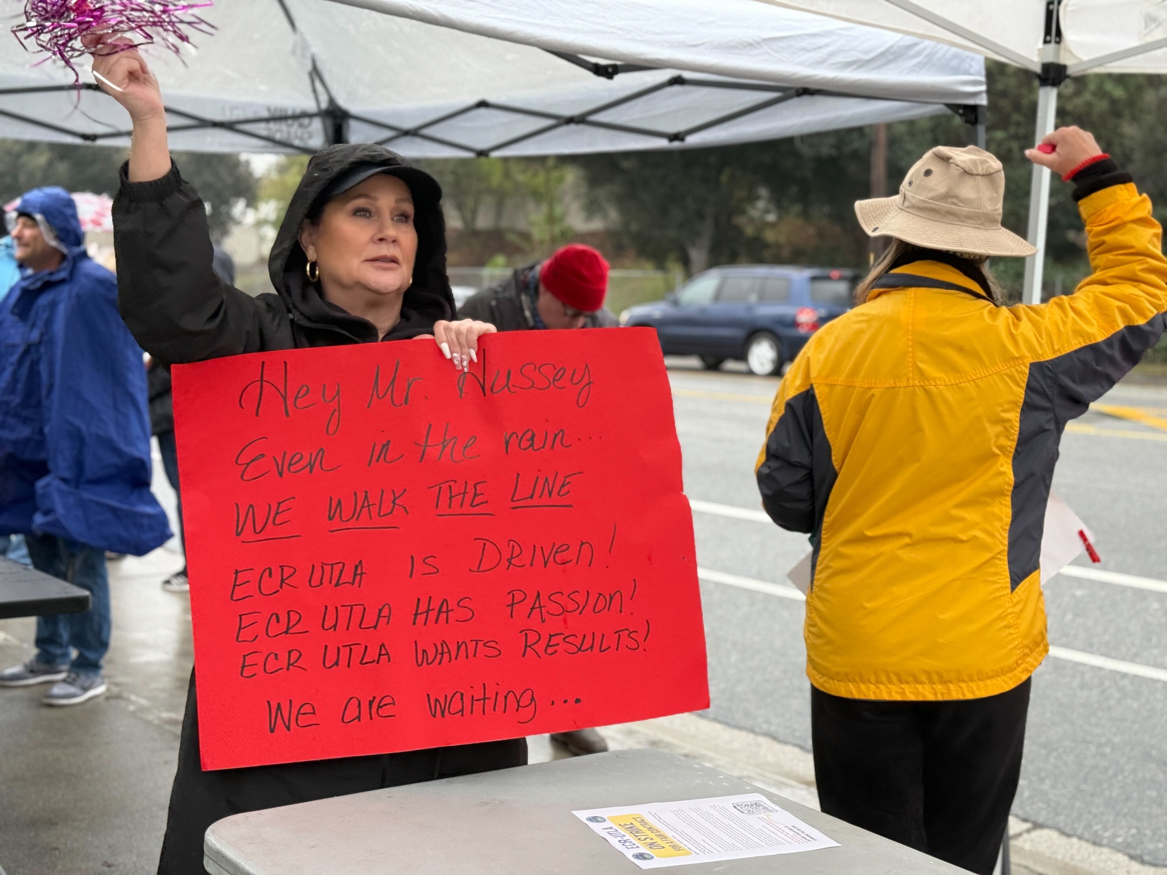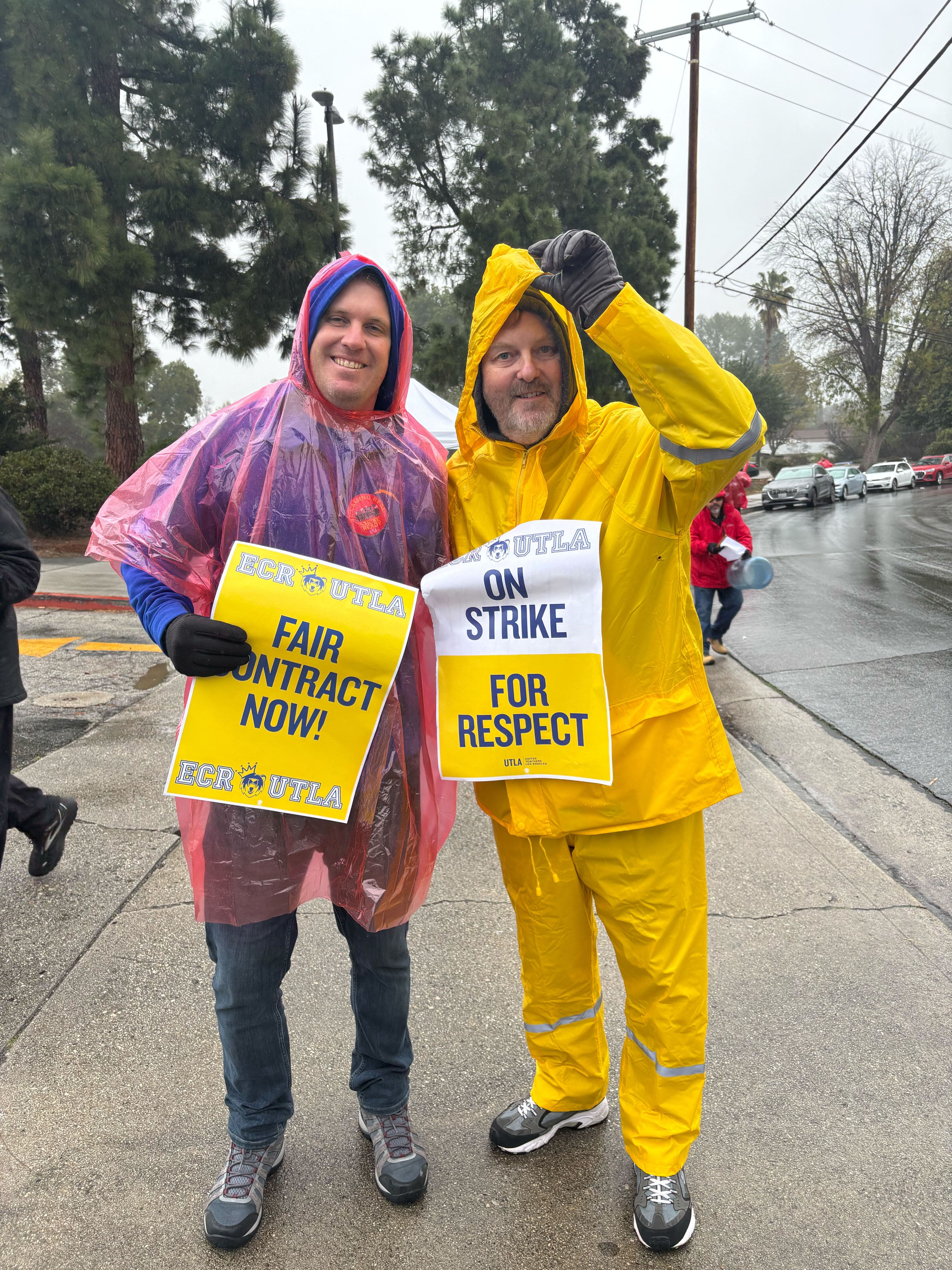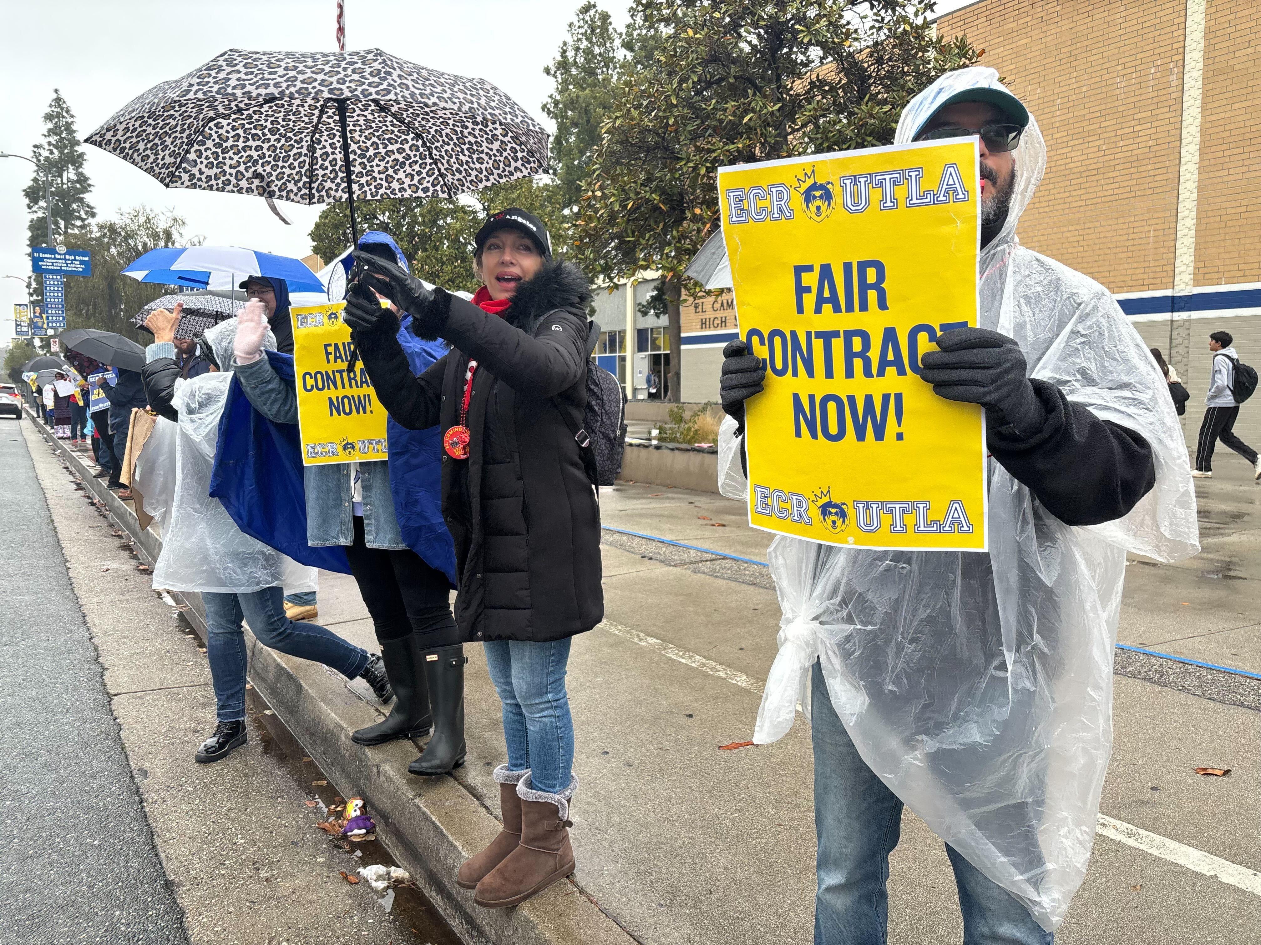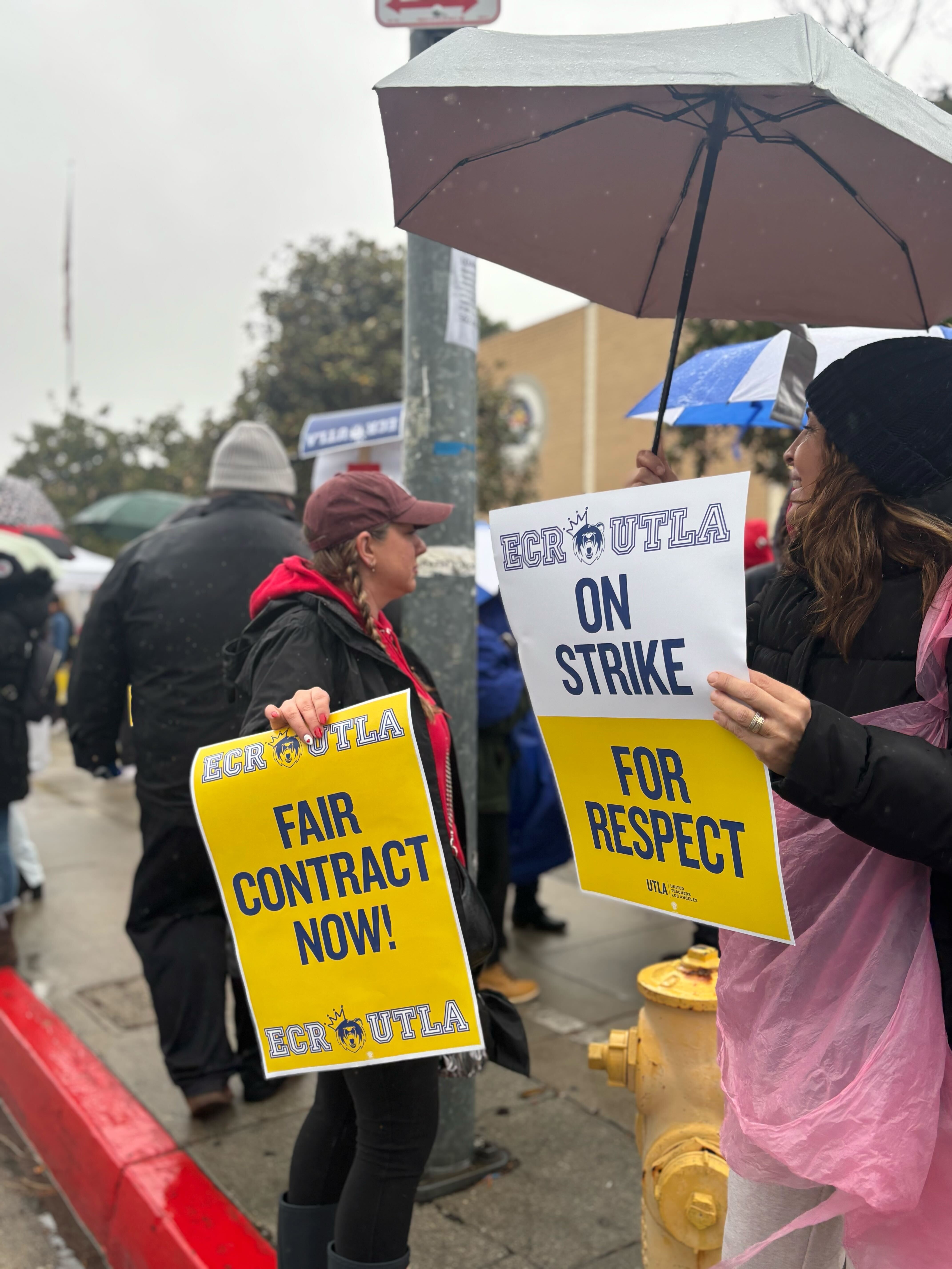 Rain fell all morning in Los Angeles, but that didn’t dampen picket lines that were stronger than ever as UTLA members and supporters called on the charter school board of directors and management to bargain a fair contract and end the strike now. Charter school management continued to refuse to negotiate a fair agreement and end the strike, telling ECR UTLA members that they were not available to bargain until Friday – and then only for two hours.