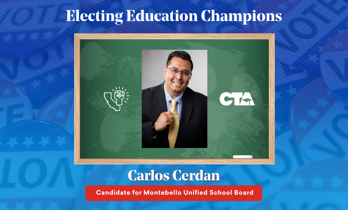Meet one of these education champions: Carlos Cerdan, an instructional coach and member of United Teachers Los Angeles, who is running for the Montebello Unified School Board.
