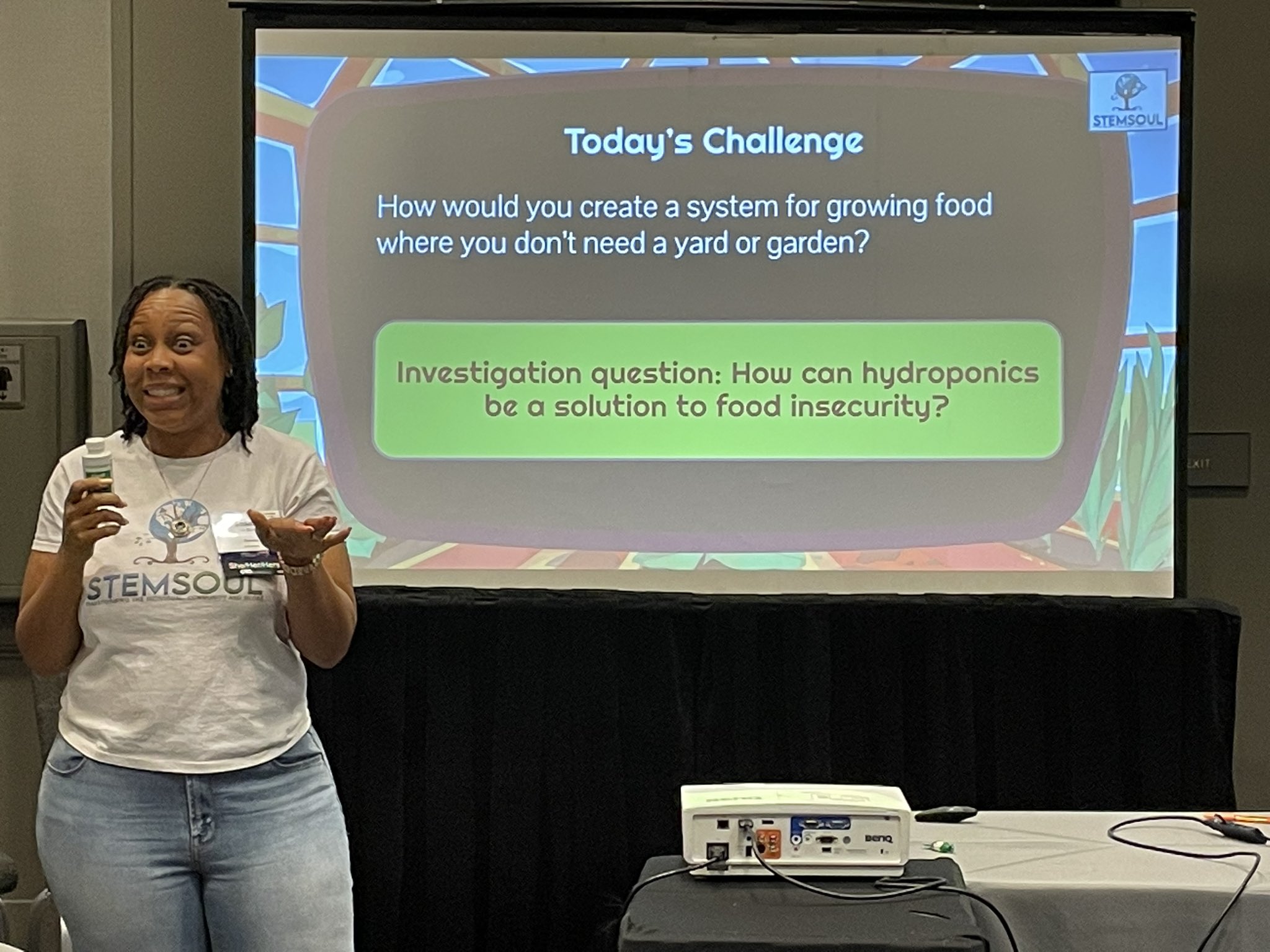In “Soul-cial Justice & the Secondary Science Classroom,” teachers were led through the inquiry process through both a student lens and in reflection as teachers to elevate their practice of culturally responsive teaching, SEL, and science while engaging in hydroponics (a way to grow food without using soil).