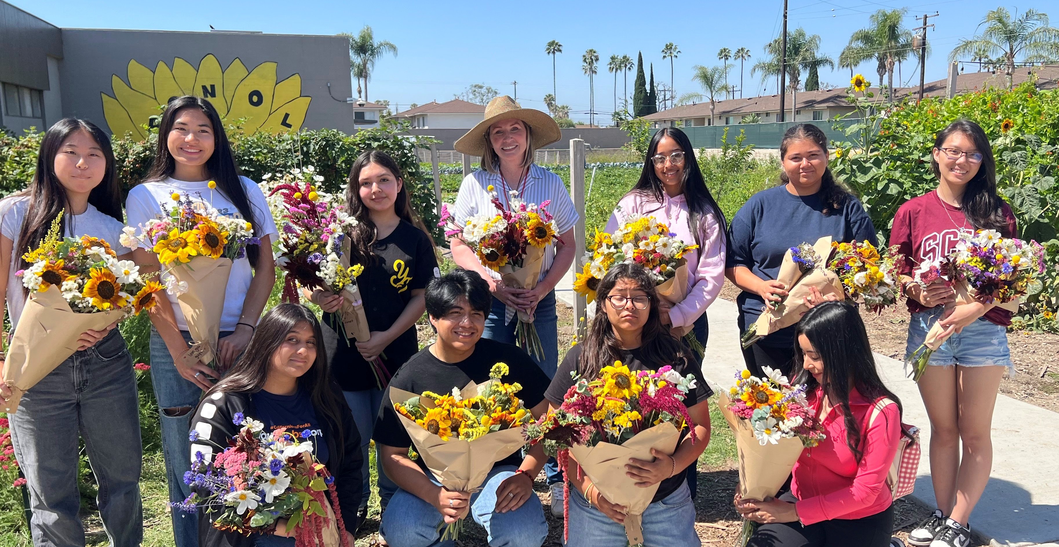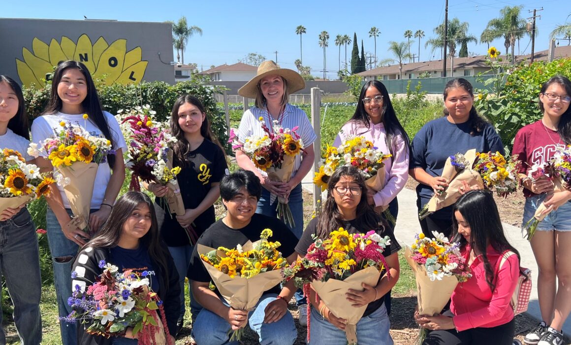 Joy with students at her floral workshop at the Magnolia Agriscience Community Center (at Magnolia High). The bouquets are sold, used for community farm-to-table dinners or given to community members as gifts.