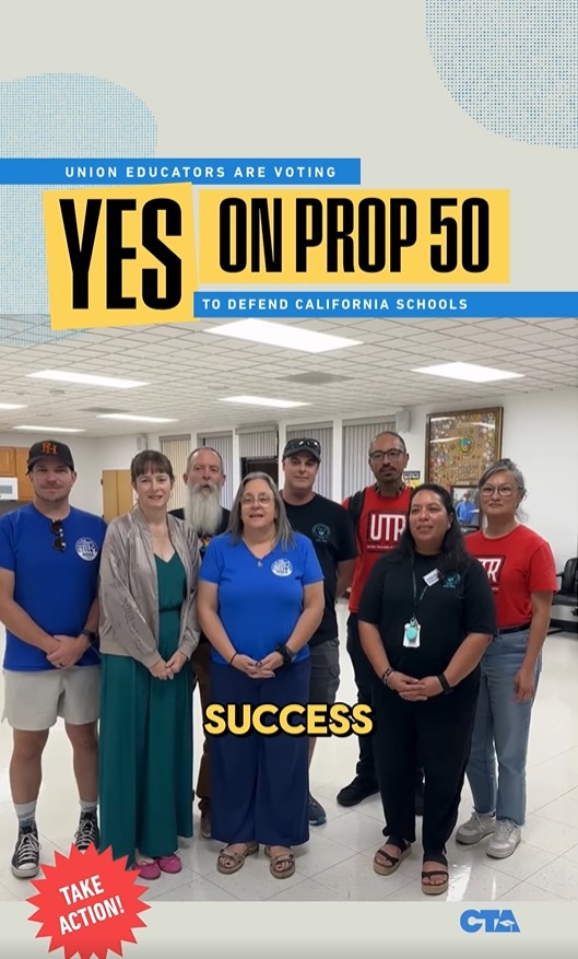 “The passage of Prop. 50 is union power! When we organize, we win,” CTA Secretary-Treasurer Erika Jones says. “We said yes to democracy and to a better future for our schools and communities!”