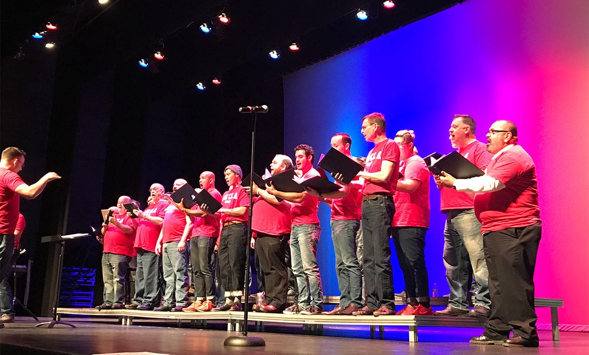Members of the Gay Men’s Chorus of Los Angeles cap off Crescenta Valley High School’s Ally Week