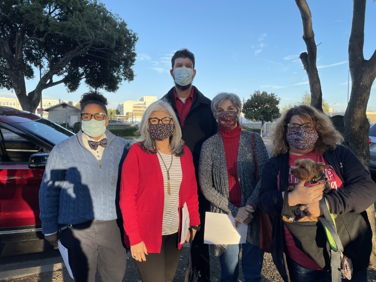 From left to right: CTA Board member Angela Normand, Association of Educational Office and Technical Employees President Deisy Bates, CTA Vice President David Goldberg, Hayward Education Association President Mercedes Faraj, and CTA Secretary-Treasurer Leslie Littman