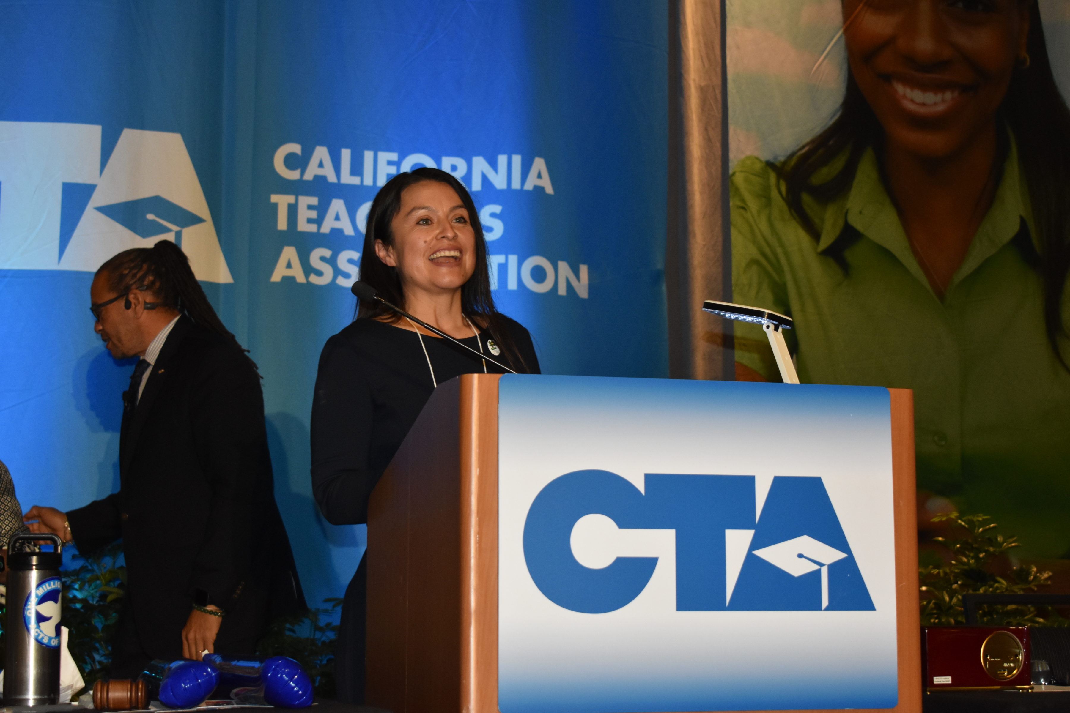 State Council honored the five California Teachers of the Year, all CTA members: Alondra Diaz, member of Saddleback Valley Educators Association; Nichi Avina, member of Palm Springs Teachers Association; Sovantevy “Sovey” Long-Latteri, member of Fullerton Secondary Teachers Organization; Tiffany Jokerst, member of Grossmont Education Association; and Virginia Vasquez, member of Alhambra Teachers Association. Diaz, California’s nominee for National Teacher of the Year honors, gave a passionate speech on behalf of the five winners that drove many in the audience to tears.