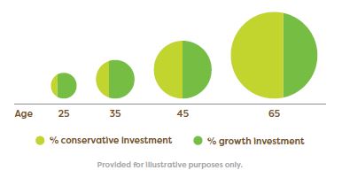 The target date fund is a mix of investments that is selected by professionals. As your planned retirement date gets nearer, the fund’s mix of investments automatically adjusts. It favors growth (more stocks) in the early years, and becomes more conservative (more bonds and income funds) as you near retirement. Using a BlackRock target date fund means you don’t have to worry about diversifying and rebalancing your portfolio; it’s all done for you.