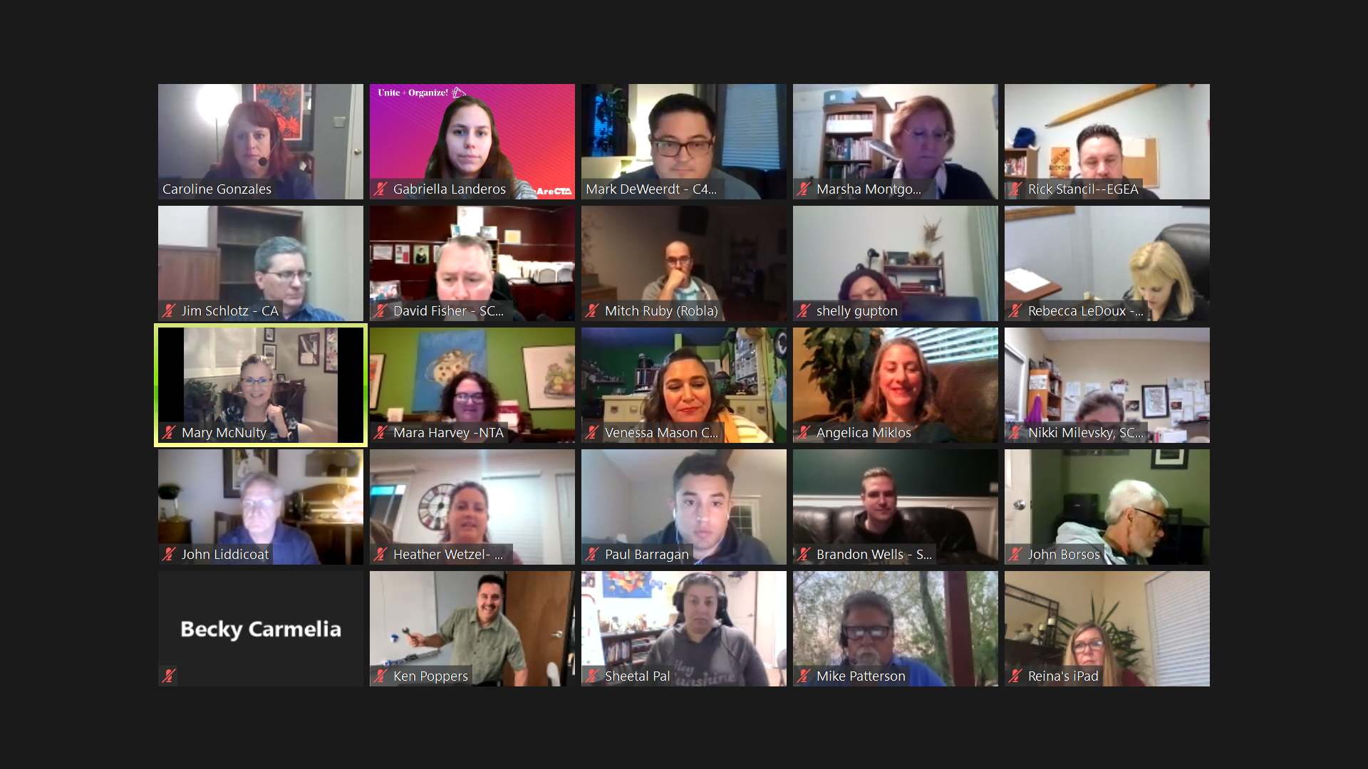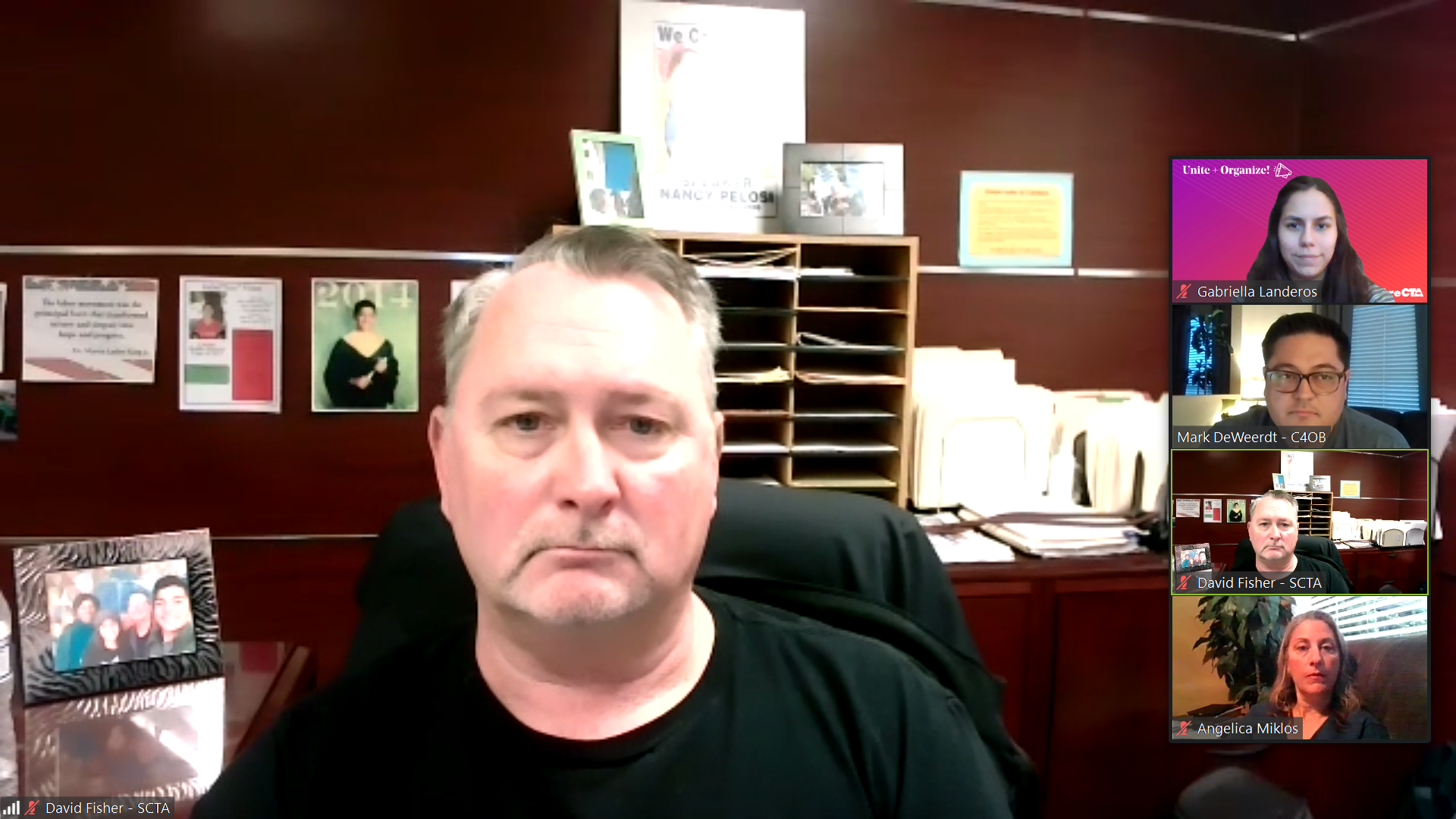 Sacramento City Teachers Association (SCTA) President David Fisher on an organizing call with other Sacramento County chapter presidents