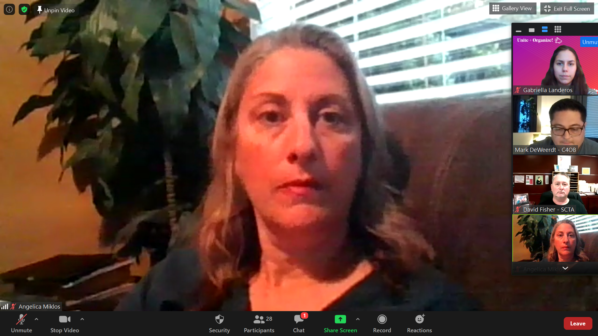 FCEA President Angelica Miklos on an organizing call with other Sacramento County chapter presidents