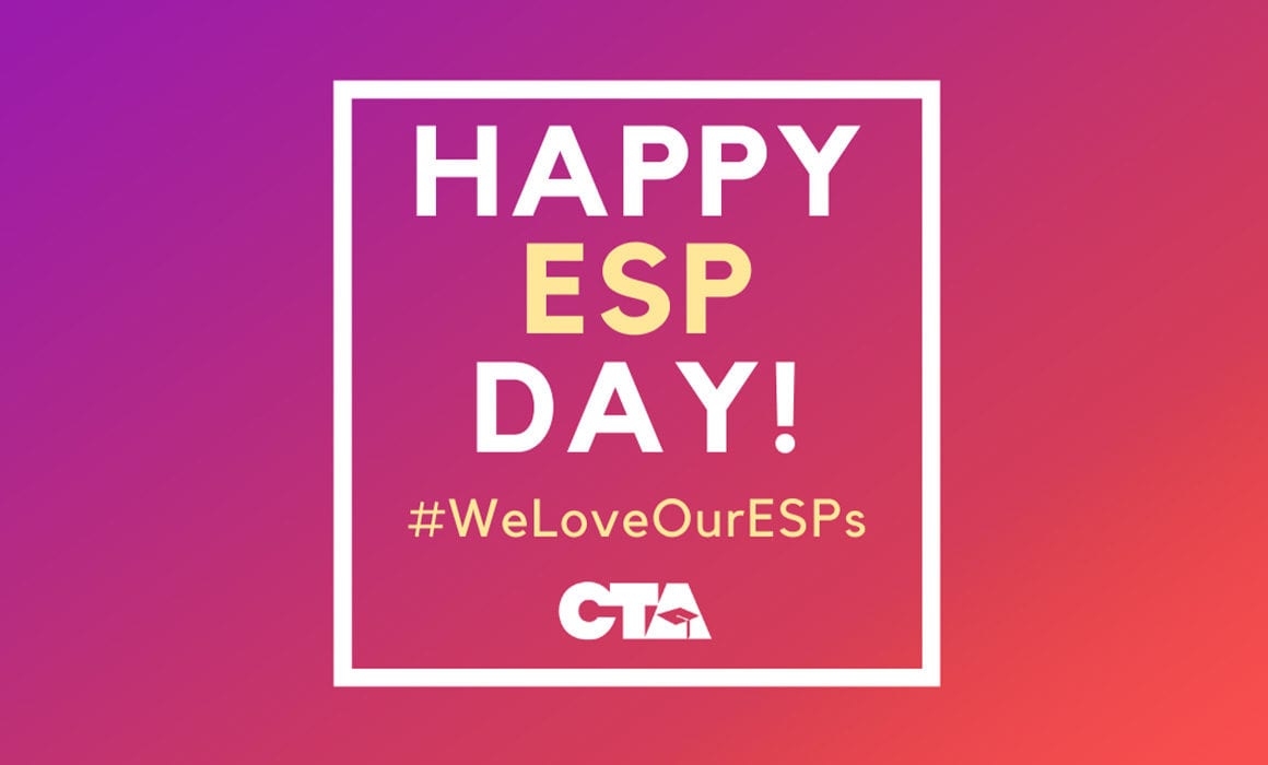 Today is CTA ESP Day, when we honor the people whose extraordinary efforts make our schools the safe, supportive homes for learning that all students deserve. Join CTA today in thanking all of the dedicated people who help nurture students every day, providing the following essential services to our school communities: clerical; custodial and maintenance; food services; health and student services; paraeducators; security; skilled trades; technical services and transportation.