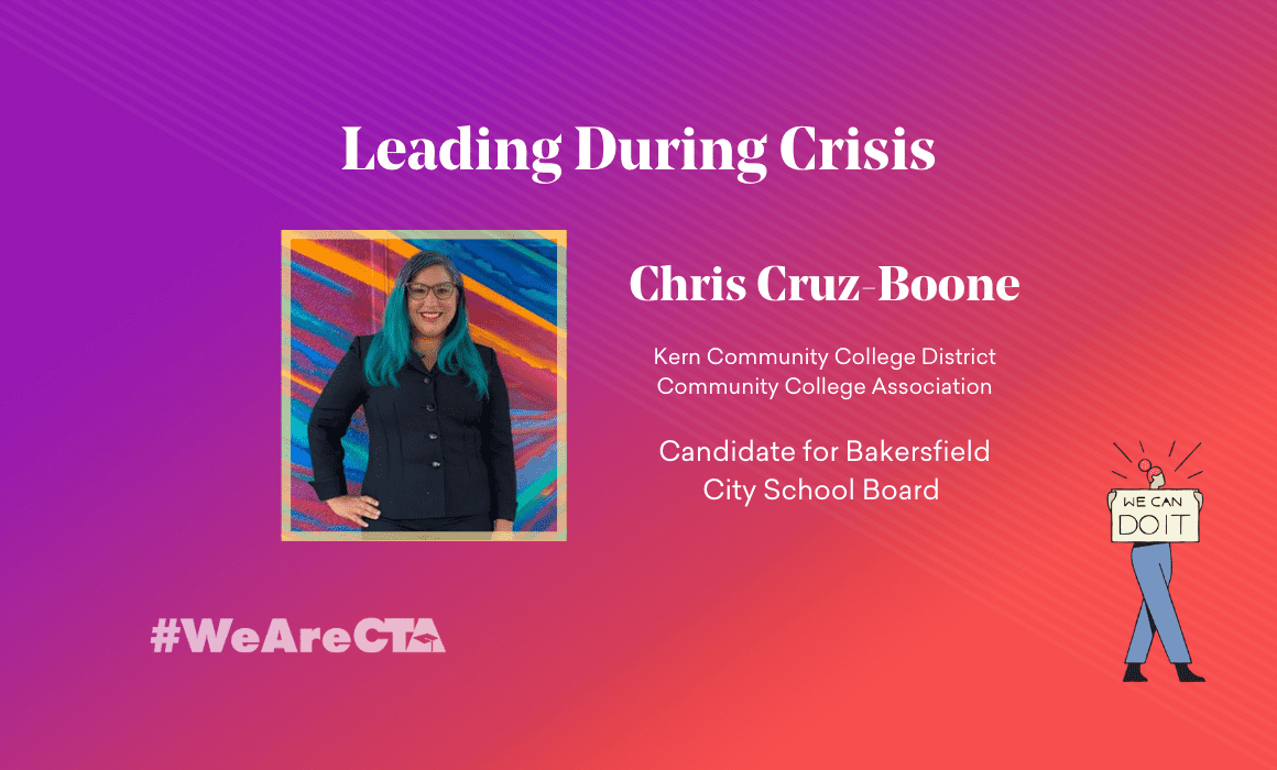 We’re shining a light on some of these dedicated educators running for election during this chaotic time – leaders who are rising to defend our students and fight for the schools and community colleges they deserve. Here’s the next in this series: Chris Cruz-Boone.