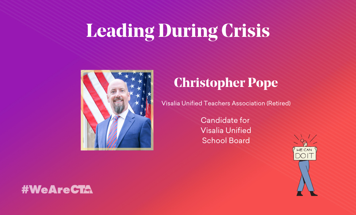 We’re shining a light on some of these dedicated educators running for election during this chaotic time – leaders who are rising to defend our students and fight for the schools and community colleges they deserve. Here’s the next in this series: Christopher Pope.