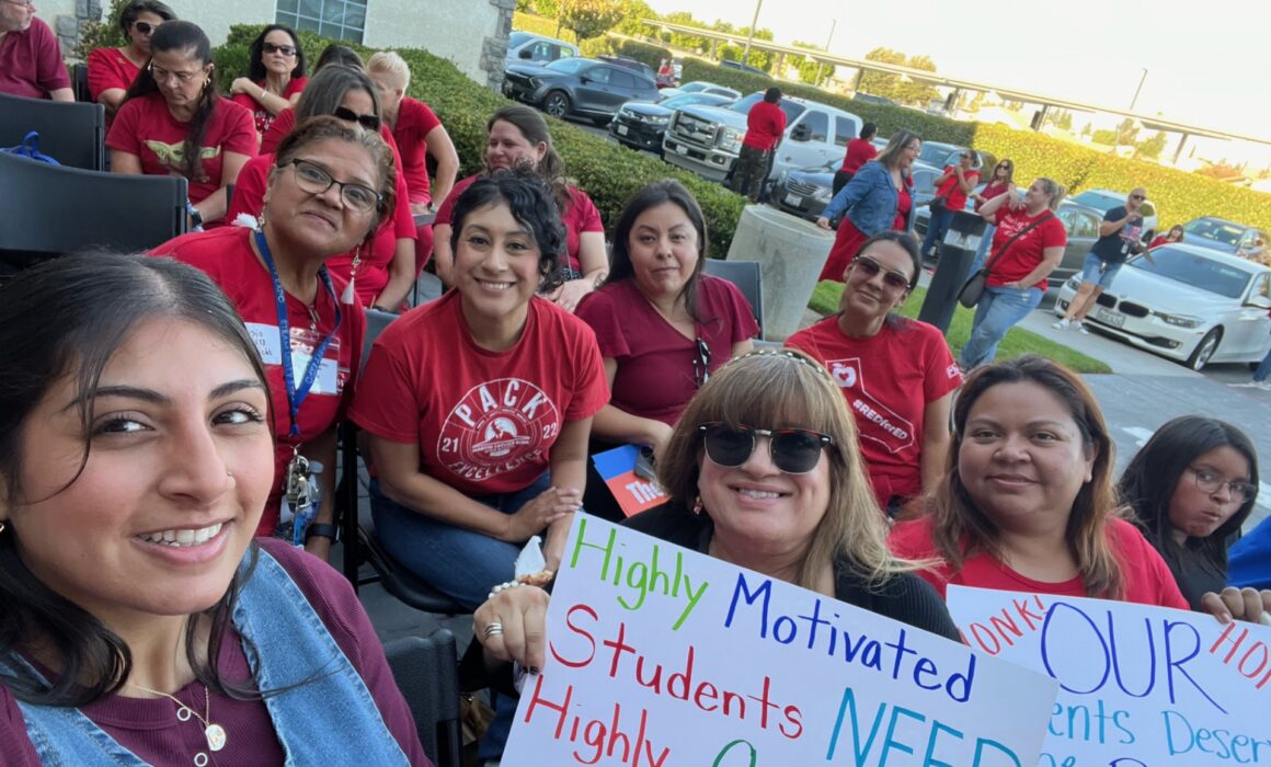 On Tuesday evening, district administrators saw a wave of over three hundred members from the Moreno Valley Educators Association (MVEA) march into the District Board room carrying signs and wearing red to remind Moreno Valley Unified School District (MVUSD) of their promise to attract and retain great educators to serve our students in every school site.