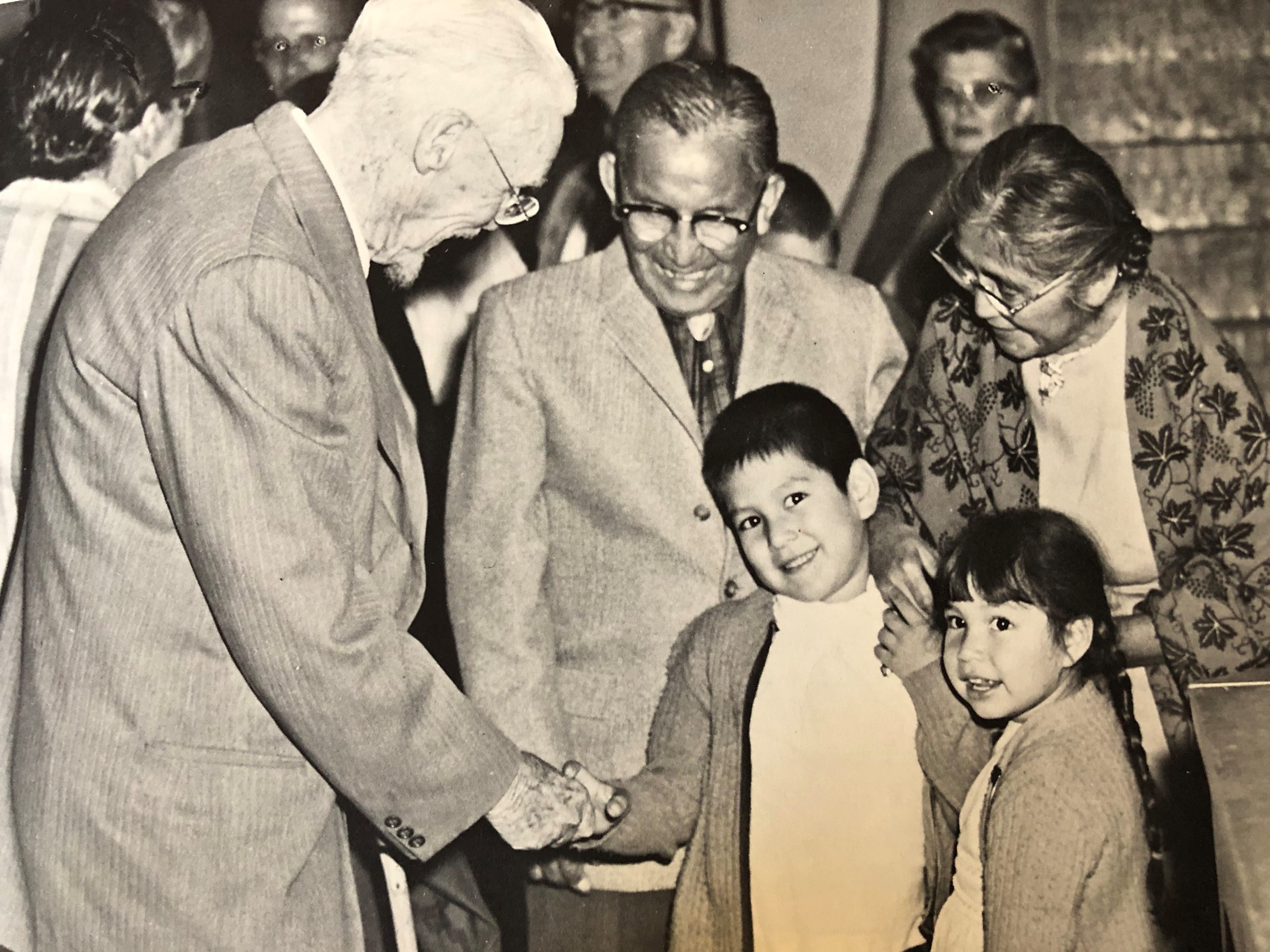 Mary Levi (lower right) with her grandfather Fred Kabotie (center), her brother, her grandmother, and Dr. Harold Colton, founder of the Museum of Northern Arizona.