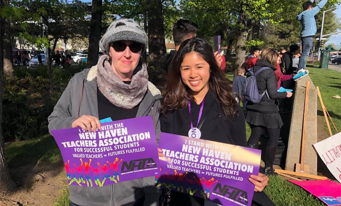 “We want a fair contract that will help recruit and retain the best teachers for New Haven students,” added Angeles. “We want a contract that meets our students’ academic needs.” Teachers have been working without a contract since July 2017, and negotiations have stalled. NHUSD management’s last proposal was for zero percent, cuts to student counseling and health services, and increasing class sizes in grades 1-3. Teachers continue to spend thousands of dollars out of their own pockets for their students and classroom despite the fact that NHUSD has received millions in new money and has $26 million in reserves.