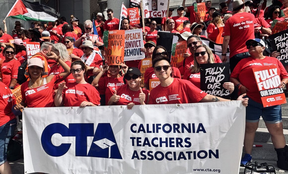 On March 28, educators stood shoulder to shoulder with more than 8 million nationwide across the country who have had enough with the Trump administration’s ongoing attacks on democracy, public education and our communities. While Trump and republicans spend billions on another illegal war, our colleges go unfunded and our students have needs that go unmet. CCA leaders and CTA State Council of Education joined a massive rally in Downtown Los Angeles, lifting our voices together to shout that in America, there are No Thrones, No Crowns and No Kings.