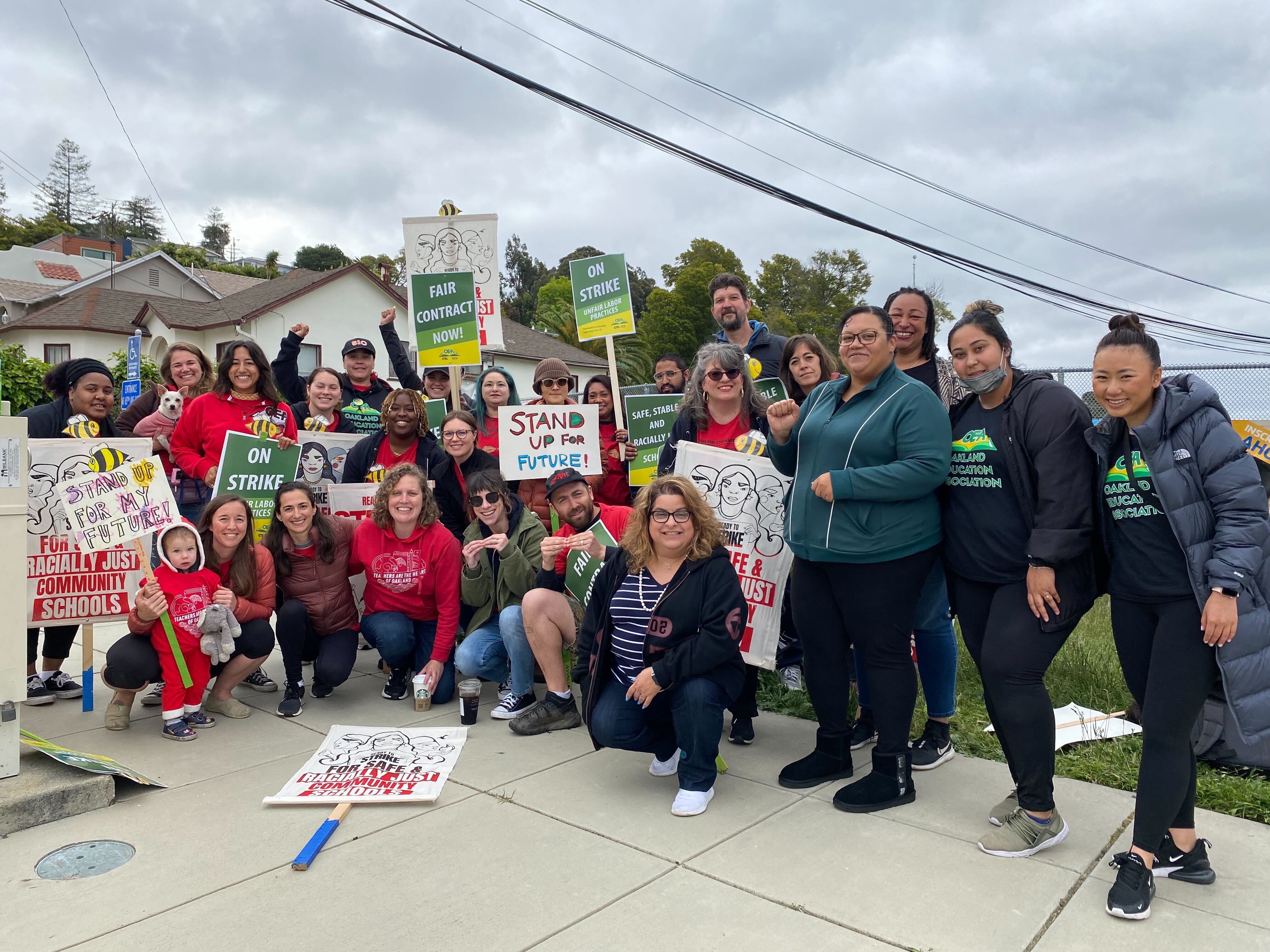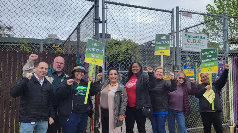 Members of the Oakland Education Association, joined by parents and allies from across the city of Oakland and beyond, were once again on picket lines outside more than 80 schools operated by OUSD from 7:30 – 11:30 am this morning.