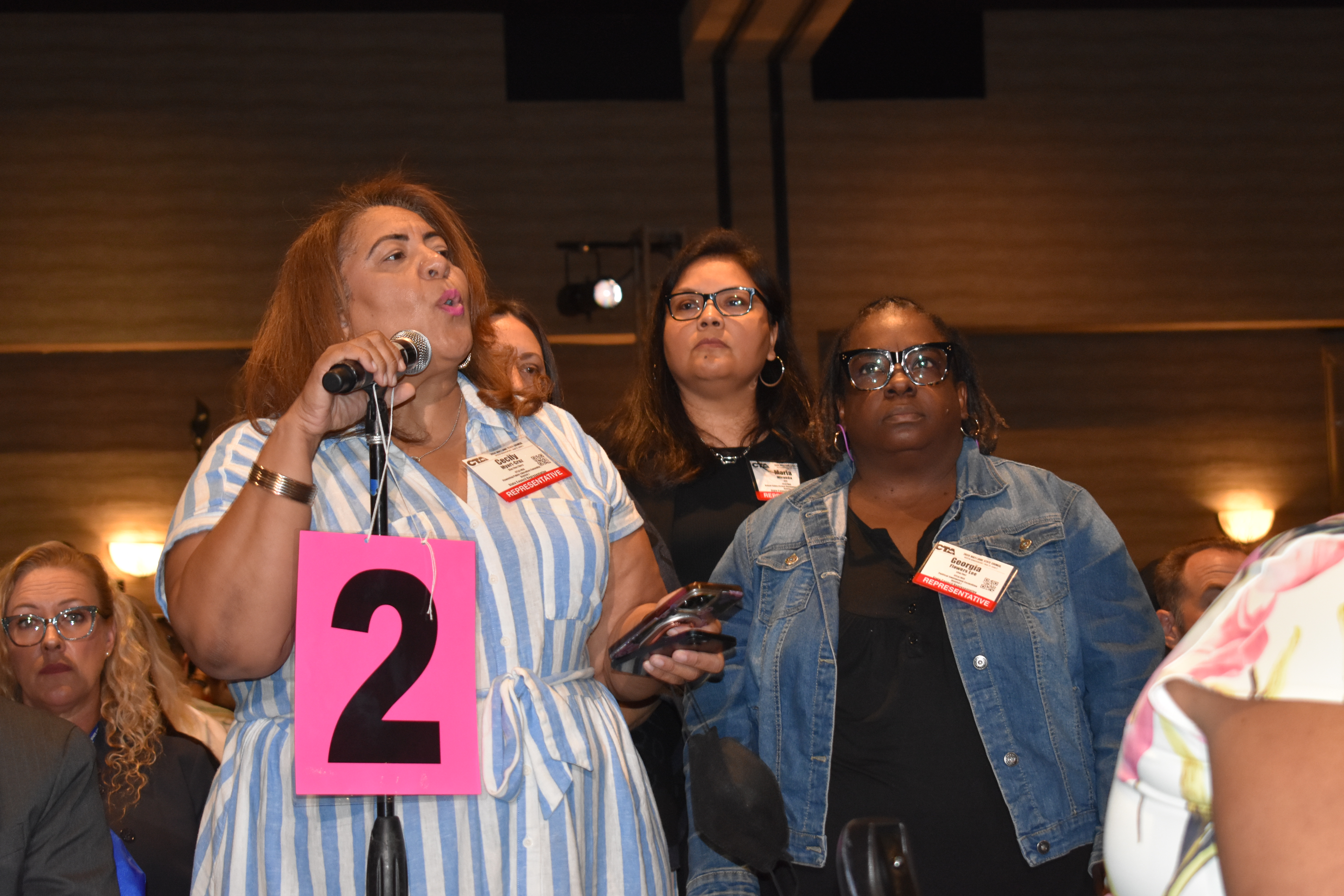 CTA State Council is democracy in action, as members debate issues and vote on positions. Pictured: United Teachers Los Angeles President Cecily Myart-Cruz