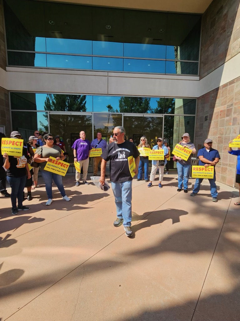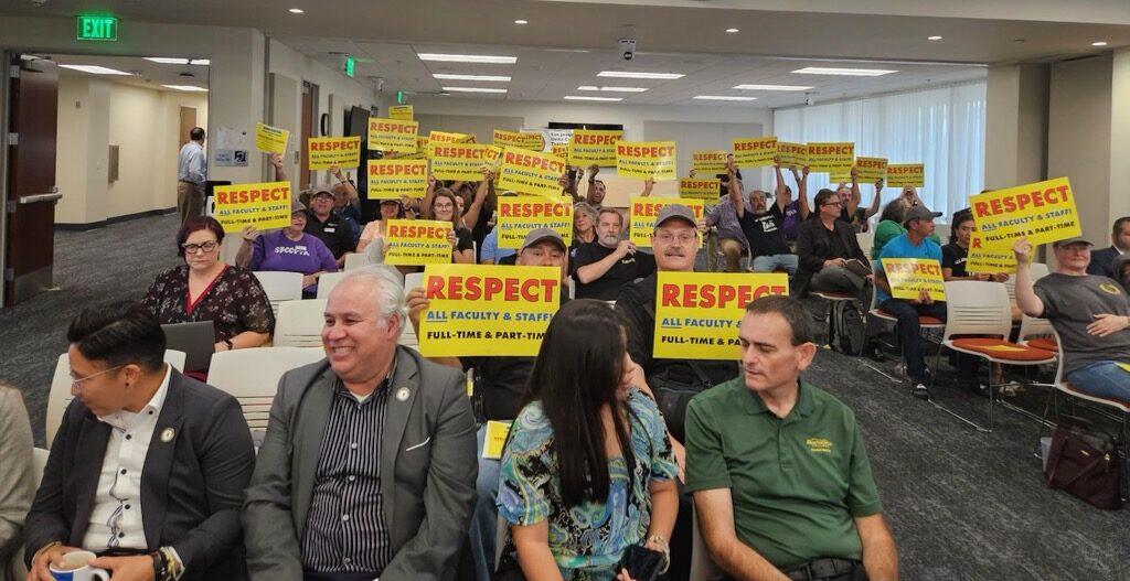 On Thursday and Friday, scores of instructors from San Bernardino Community College District Teachers Association (SBCCDTA) rallied at San Bernardino Valley College to demand the economic justice of affordable healthcare, while safeguarding against an insidious policy that could double the workload of SBCCDTA members-without compensation.