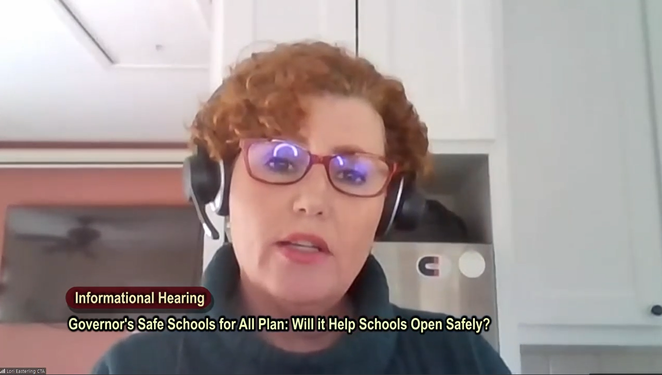 “Our educators want to get back in the classroom and on campus as soon as possible but do not want to compromise the safety of our students, teachers, school employees and communities,” CTA Legislative Relations Manager Lori Easterling testified at the hearing.