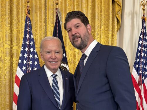 President Joe Biden and CTA President David Goldberg at the signing of the Social Security Fairness Act at The White House.