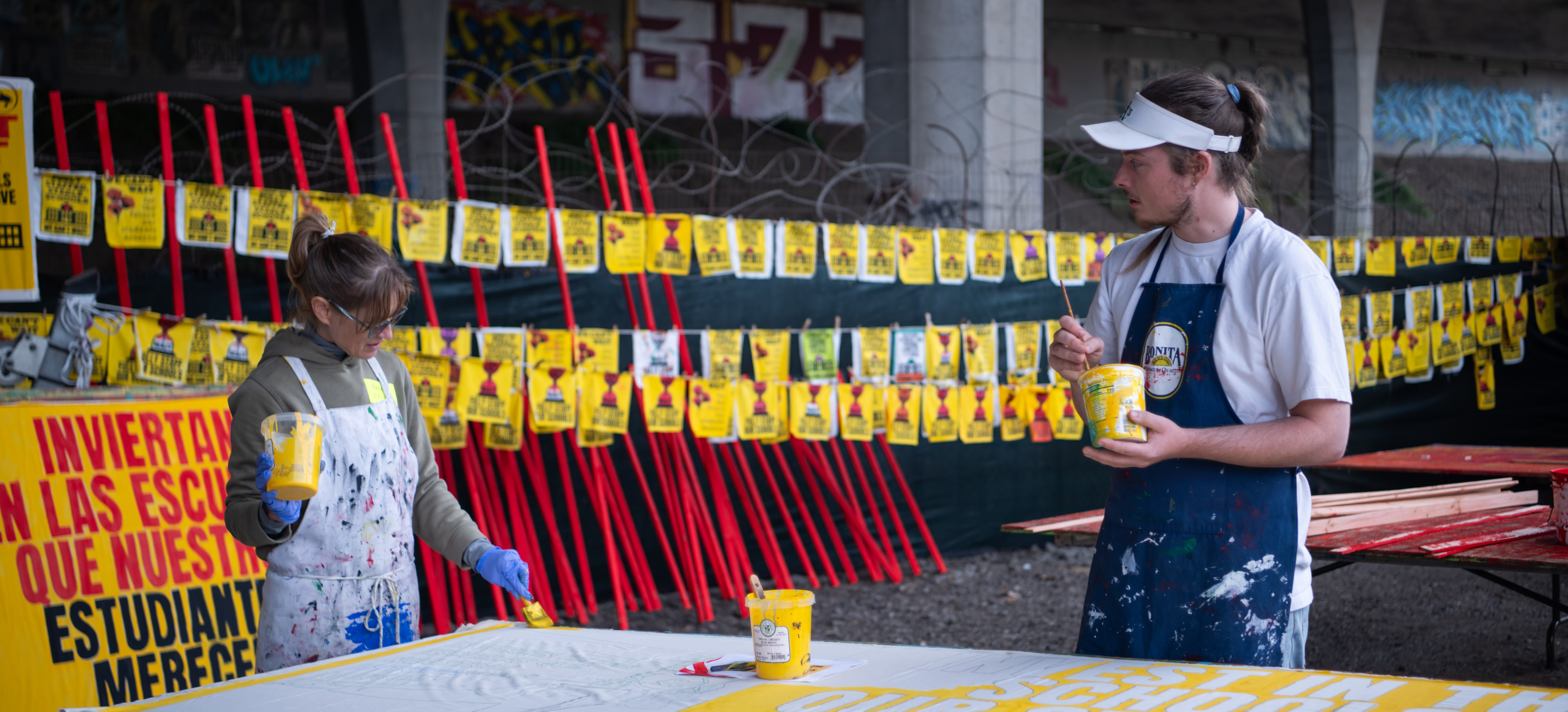 UTR President Francisco Ortiz says of the art build, “We are in the fight of our lives for public education, [so] the love and support from everyone are very meaningful.”