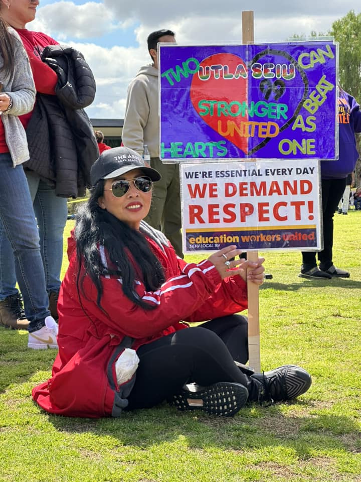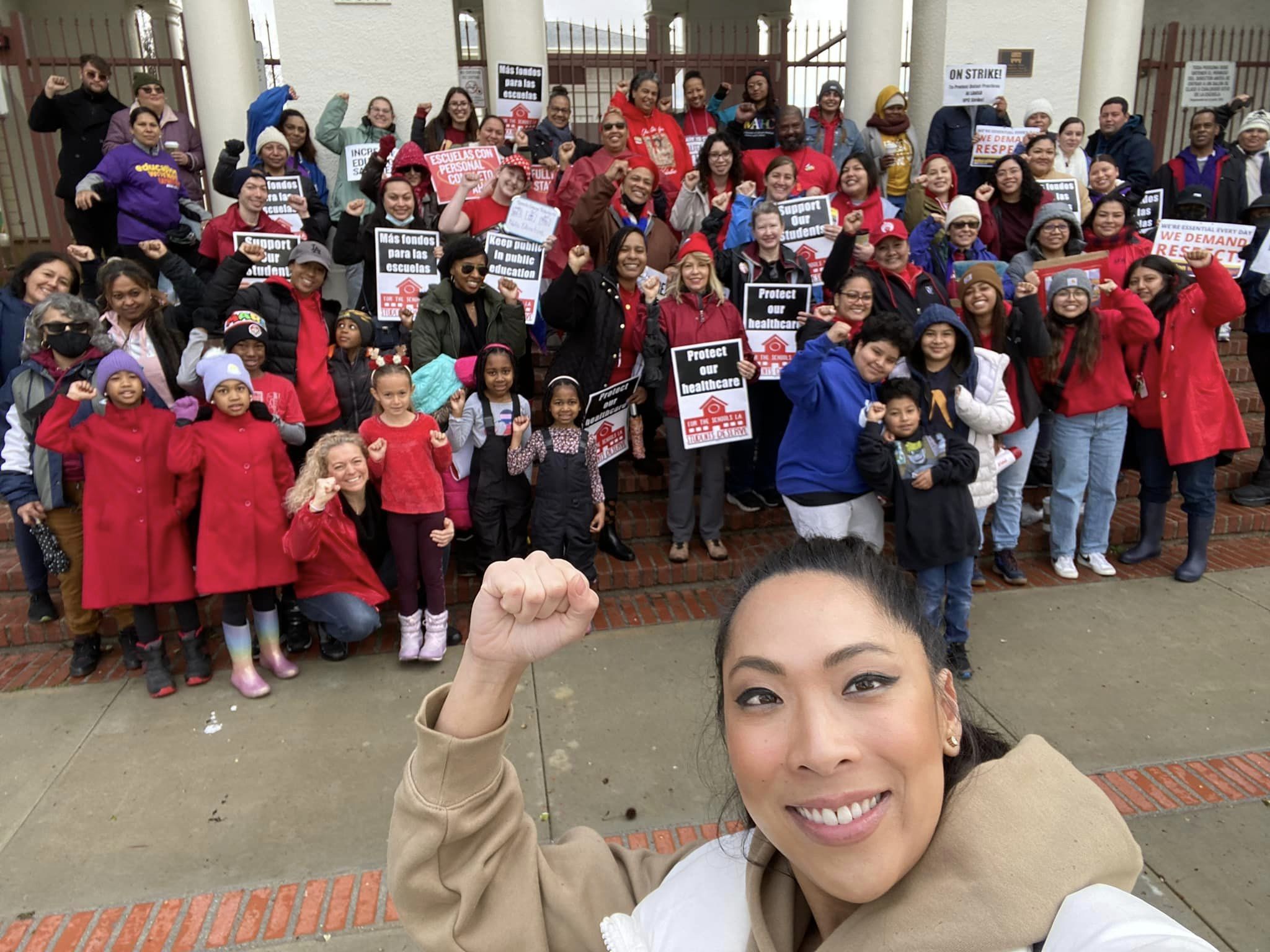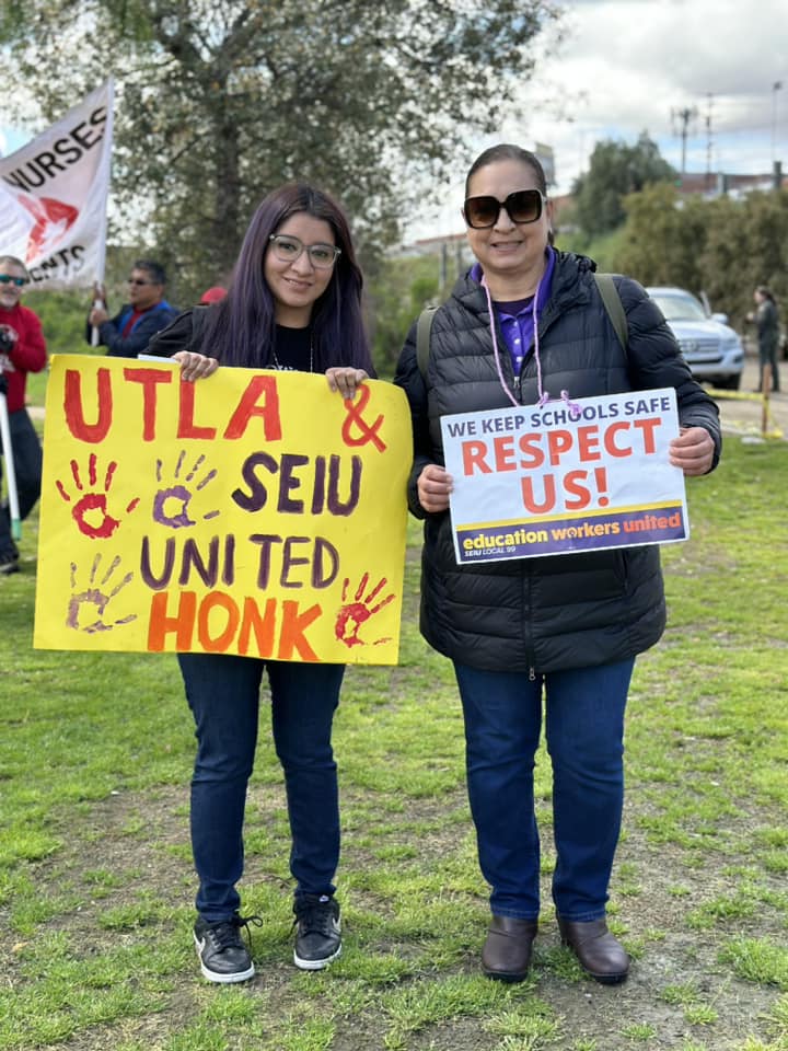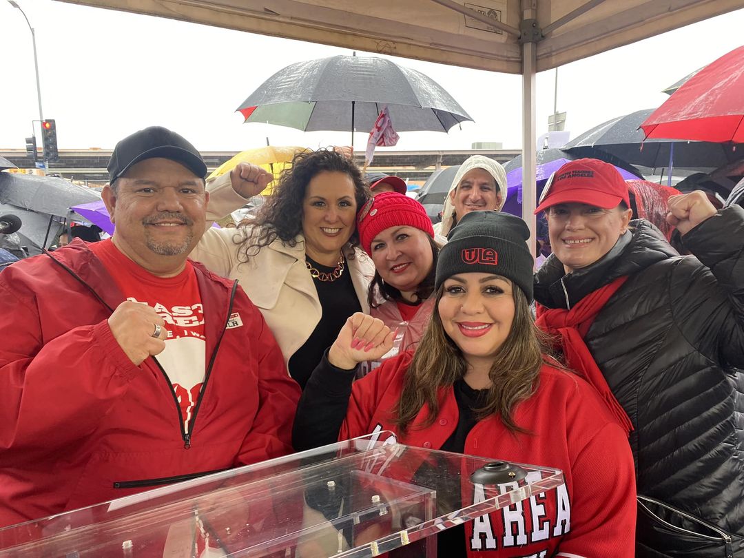“We are standing in solidarity with SEIU Local 99. This is a righteous fight. We’re out here in these streets because it is so important,” said UTLA President Cecily Myart-Cruz. “We are speaking out, we are speaking up and we will no longer be silent.”