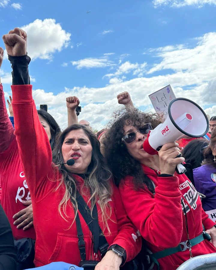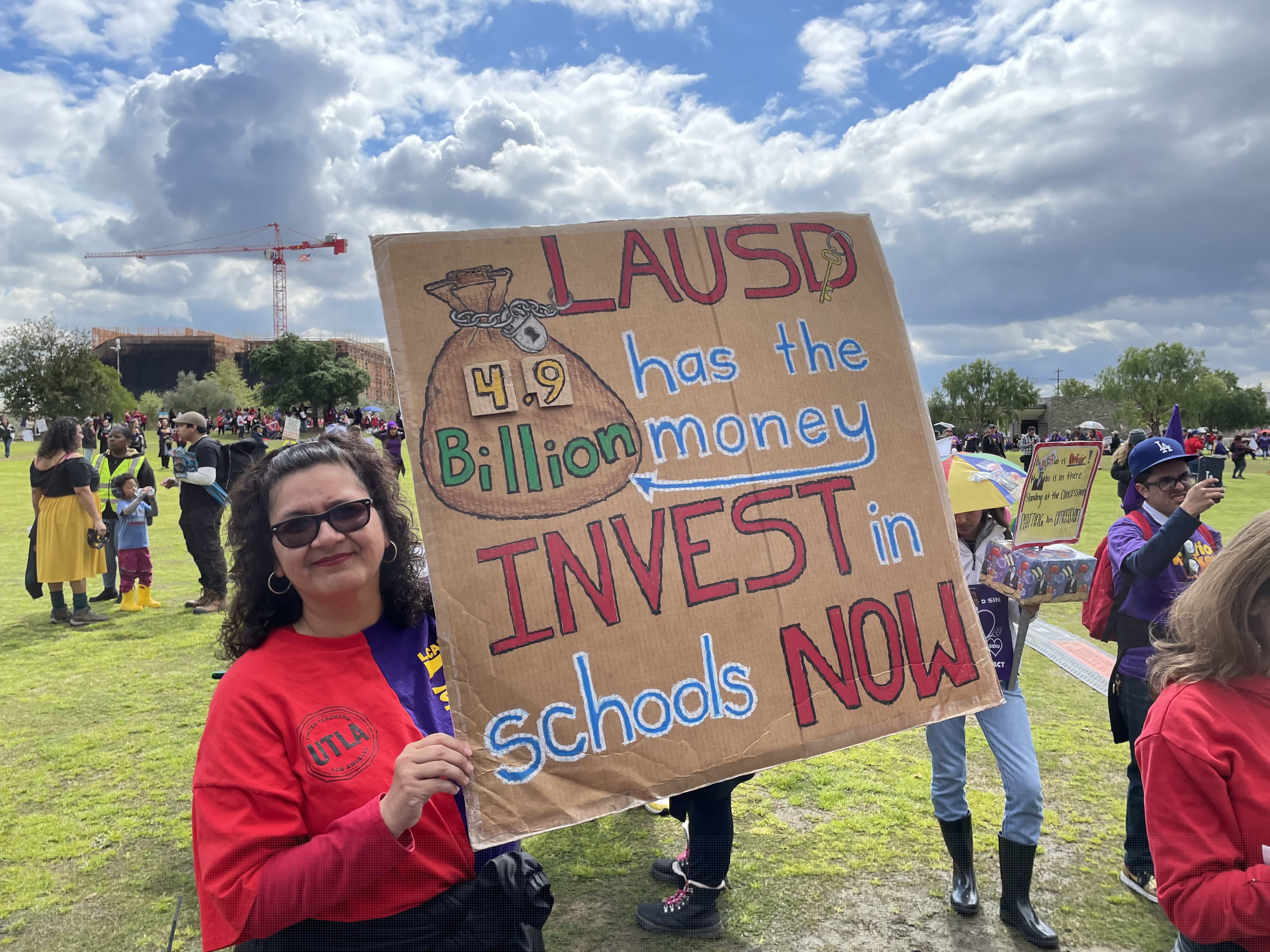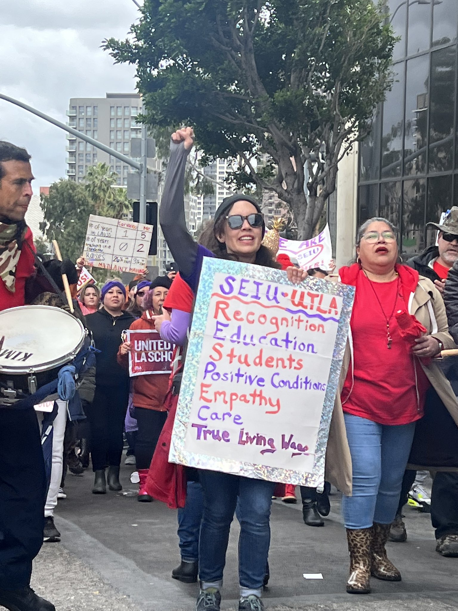 “We are standing in solidarity with SEIU Local 99. This is a righteous fight. We’re out here in these streets because it is so important,” said UTLA President Cecily Myart-Cruz. “We are speaking out, we are speaking up and we will no longer be silent.”