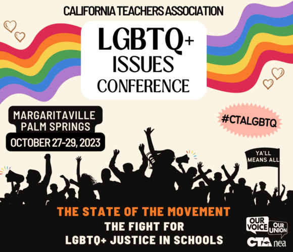 CTA is proud to present the 15th annual CTA conference addressing the current coordinated attacks on LGBTQ+ students and educators and how we can fight back. This conference will be hosted in-person and is open to all CTA members and will serve as a venue to discuss a variety of subjects affecting the entire membership and California’s youth.