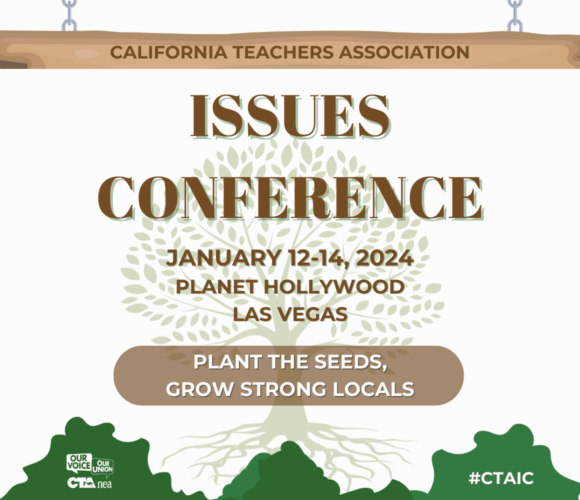 The CTA Issues Conference brings together local leaders and activists to learn, discuss, and strategize so that we can organize and increase our collective voice on the state and local issues that matter most in education. The 2024 conference will take place January 12 – 14.