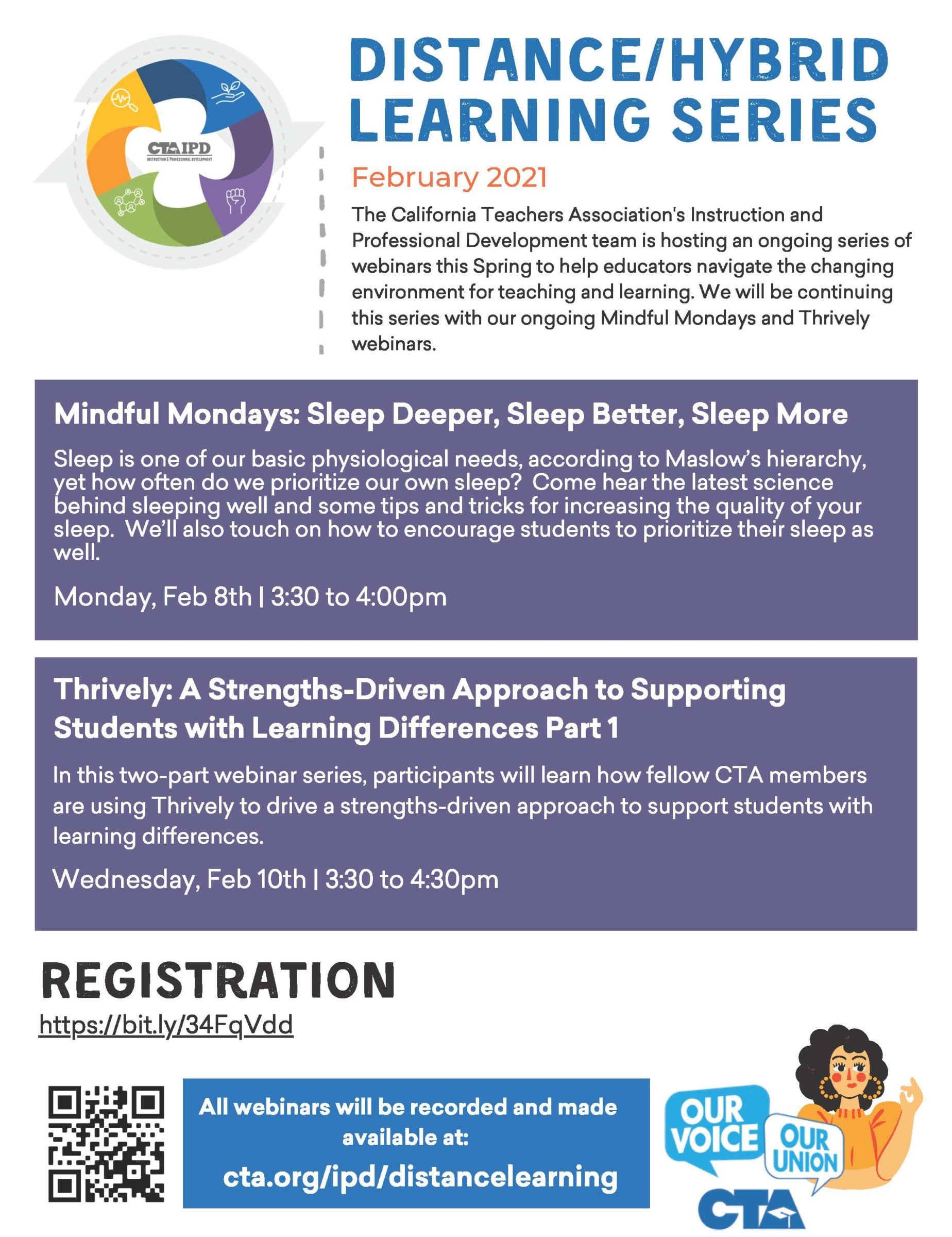 The IPD department is continuing to offer its Mindful Mondays and IFT Thrively webinars this Spring for all CTA members.