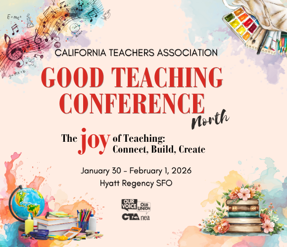 1 event,2026 Good Teaching Conference – North2026 Good Teaching Conference – NorthThe CTA Good Teaching Conferences supports excellent teaching and learning practices for classroom teachers via peer-to-peer instruction. |