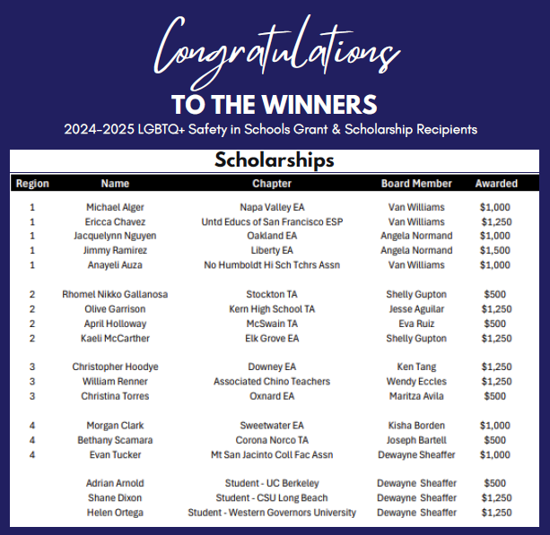 The scholarship program will support self-identified LGBTQ+ active CTA/CTA Aspiring Educators (CTA-AE) members enrolled in a teacher/counseling credential or graduate program who are pursuing a career in public education and who understand the importance of LGBTQ+ educators as role models in our public schools.