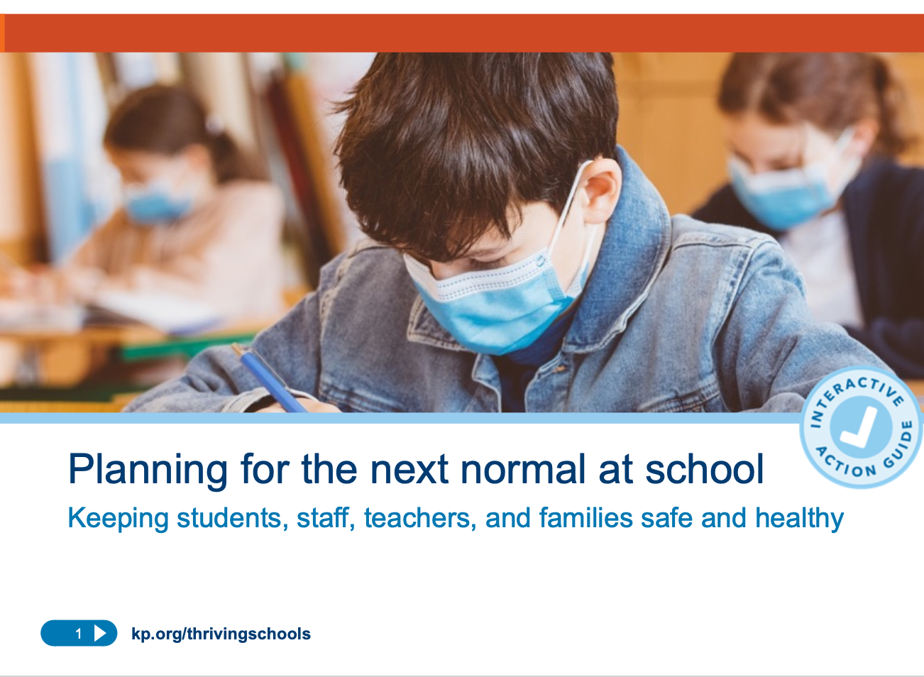 The Planning for the Next Normal at School playbook is an evolving collection of recommendations, co-authored by Alliance for a Healthier Generation, Action for Healthy Kids, Healthy Schools Campaign, SHAPE America, and FutureEd to address the total health needs of the school community for in-person and virtual learning environments. The playbook provides a framework to understand, assess, and implement strategies for COVID-19 prevention, social drivers of health, physical activity and physical education, staff and teacher well-being, mental health and well-being, and funding.