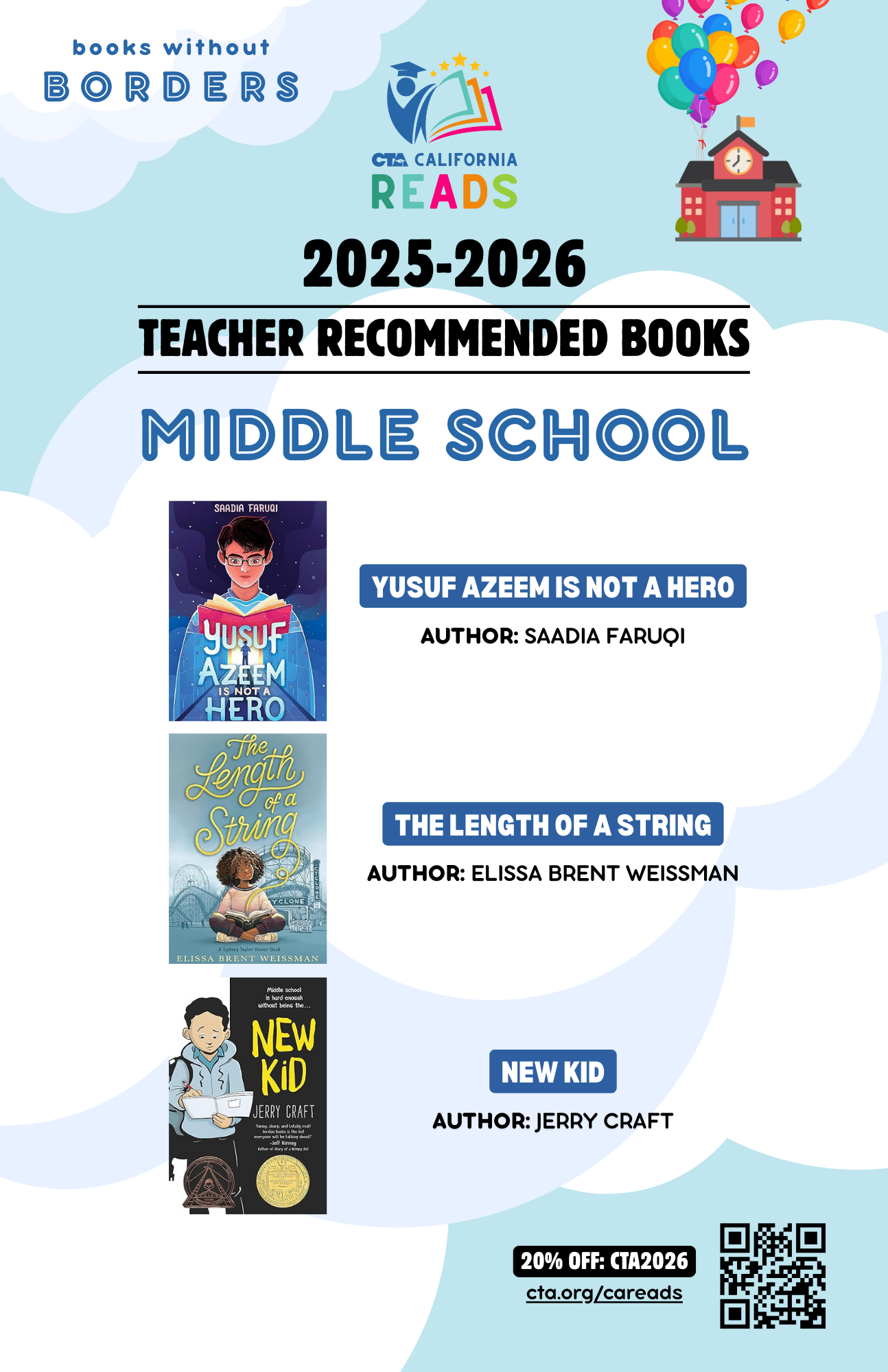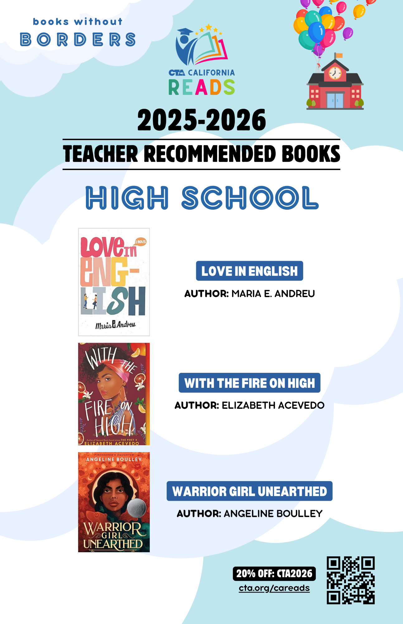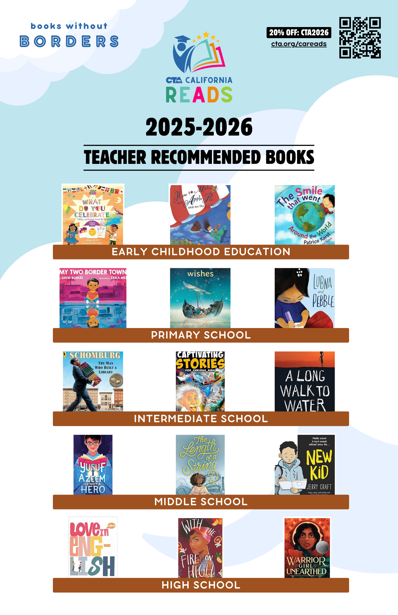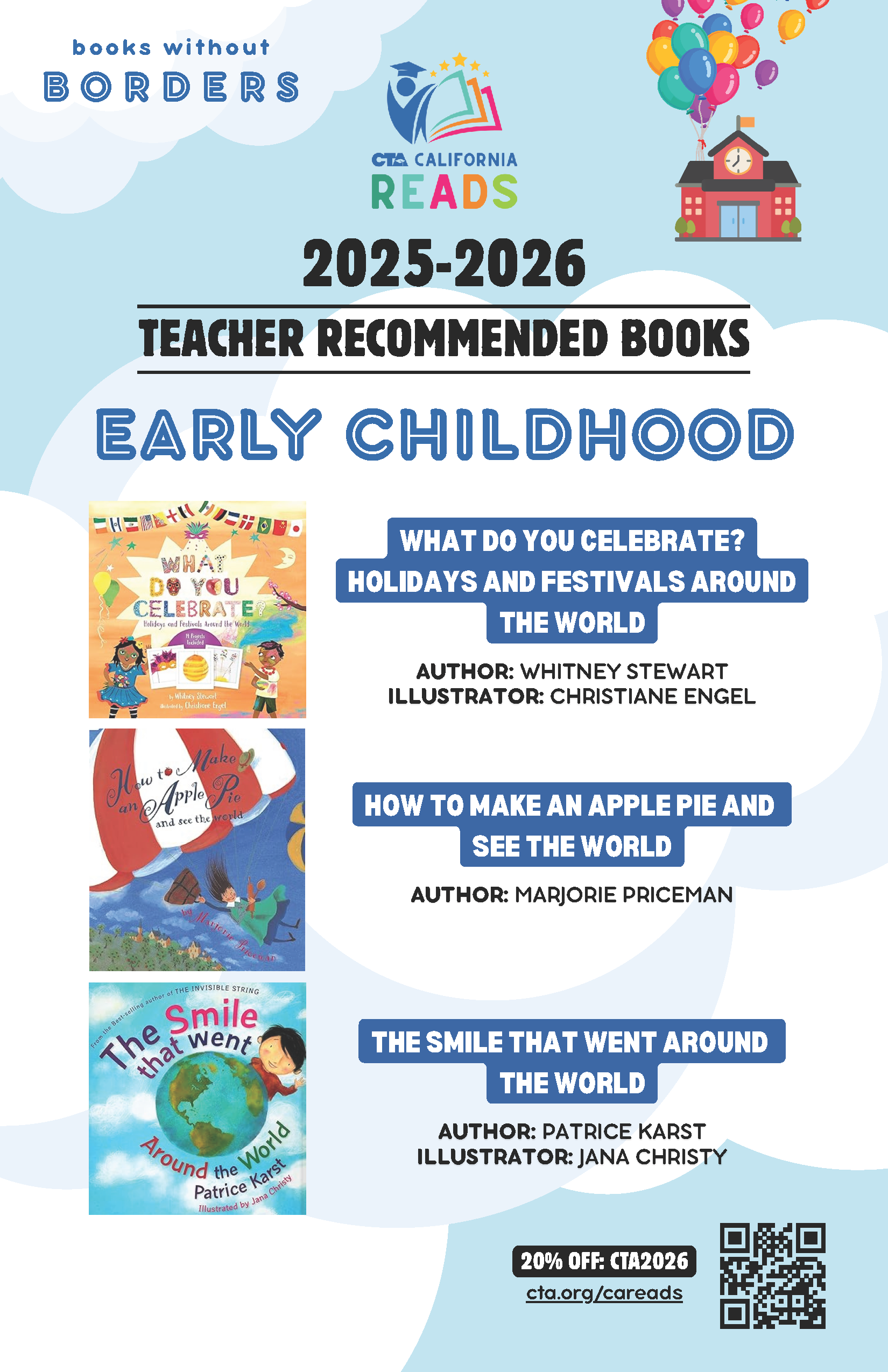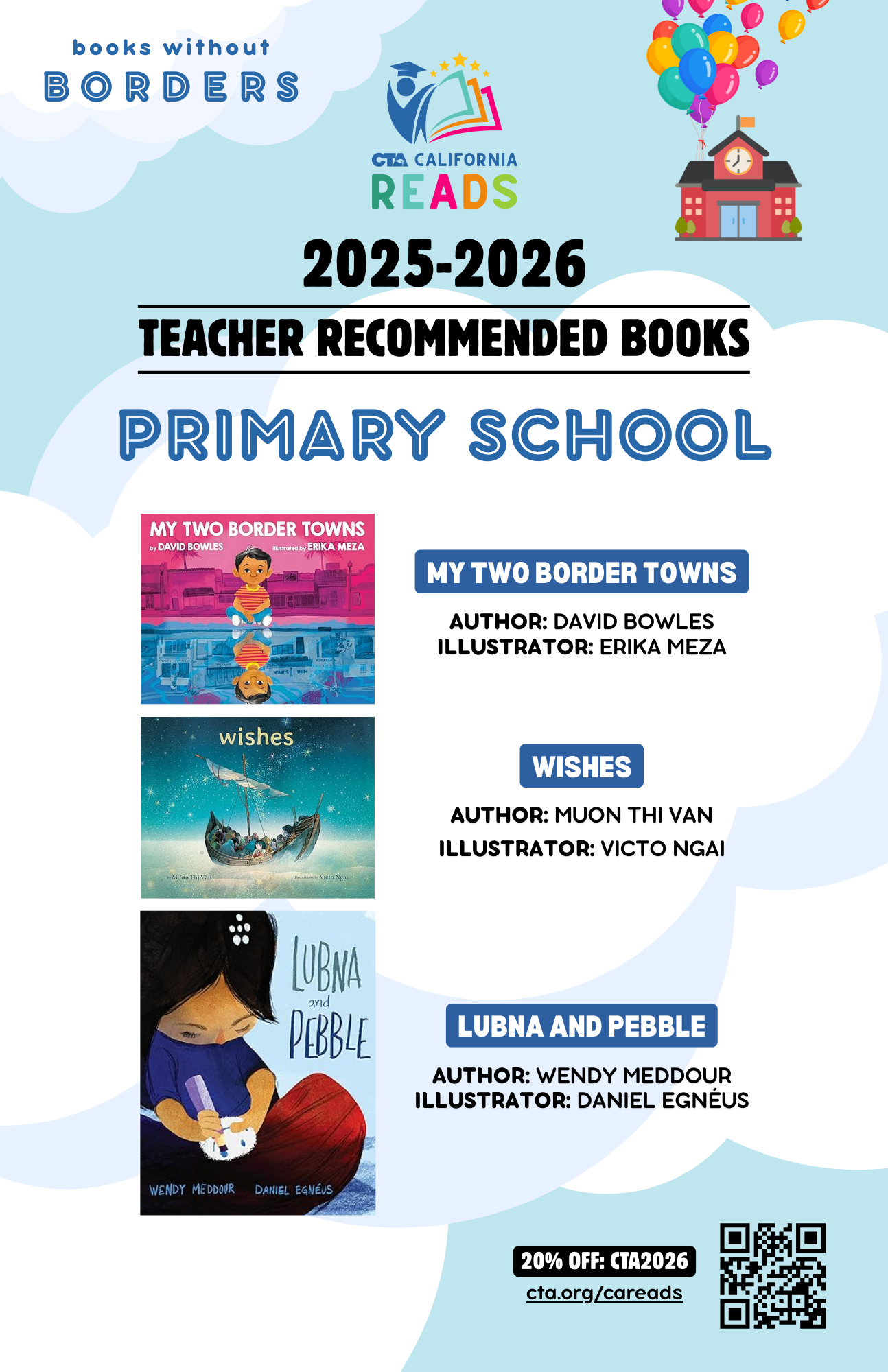 The California Reads Committee offers teacher-approved quarterly book recommendations for multiple age groups. This year's theme is Books without Borders.