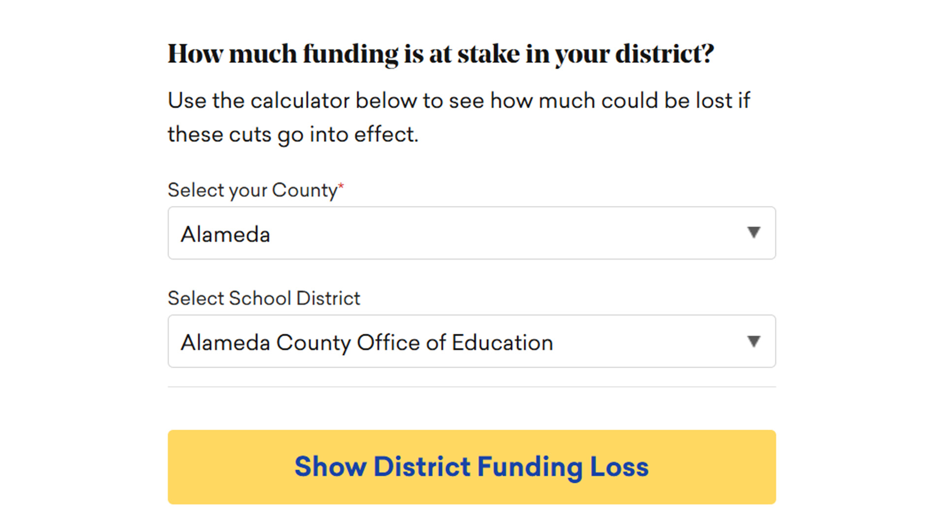 On May 17, 15,000 public school educators, parents, students and community allies gathered at rallies and marches in San Diego, Los Angeles, Hanford, San Francisco and Sacramento as part of a statewide Fight for Schools day of action organized by our union to demand protection for federal funding for public schools on the chopping block by the Trump Administration. There are billions of dollars at stake – California, with nearly six million public-school students, received about $16 billion in federal funding, or around $2,748 per student this year. Use the federal budget cuts calculator below to see how much your district will lose if the budget cuts go into effect.