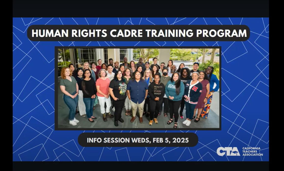 This is an application for members interested in becoming a Human Rights Cadre Trainer. We are looking for applicants who exhibit great adult learning teaching skills, advocate for educators, students and the community, understand CTA’s mission and focus, and have some training experience and content expertise in racial and social justice issues, cross-cultural settings and are committed to delivering an authentic, inspiring and transformative program for CTA members. Trainers will be asked to work in collaborative groups to co-develop content, provide feedback and recommendations, and other support as needed with other cadre trainers.
